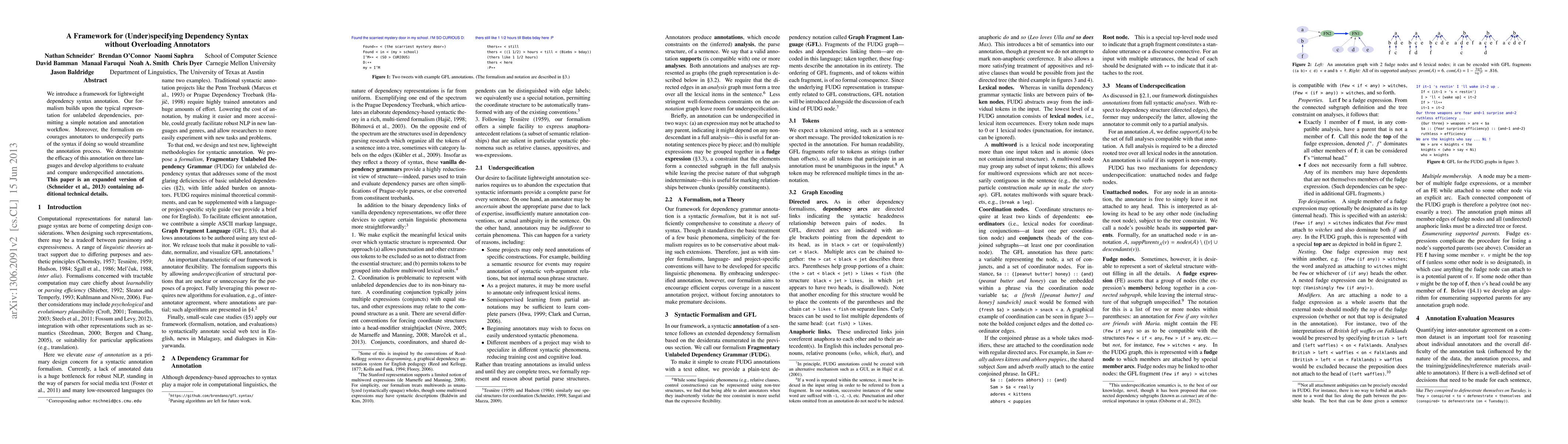 We introduce a framework for lightweight dependency syntax annotation. Our formalism builds upon the typical representation for unlabeled dependencies, permitting a simple notation and annotation workflow. Moreover, the formalism encourages annotators to underspecify parts of the syntax if doing so would streamline the annotation process. We demonstrate the efficacy of this annotation on three languages and develop algorithms to evaluate and compare underspecified annotations.