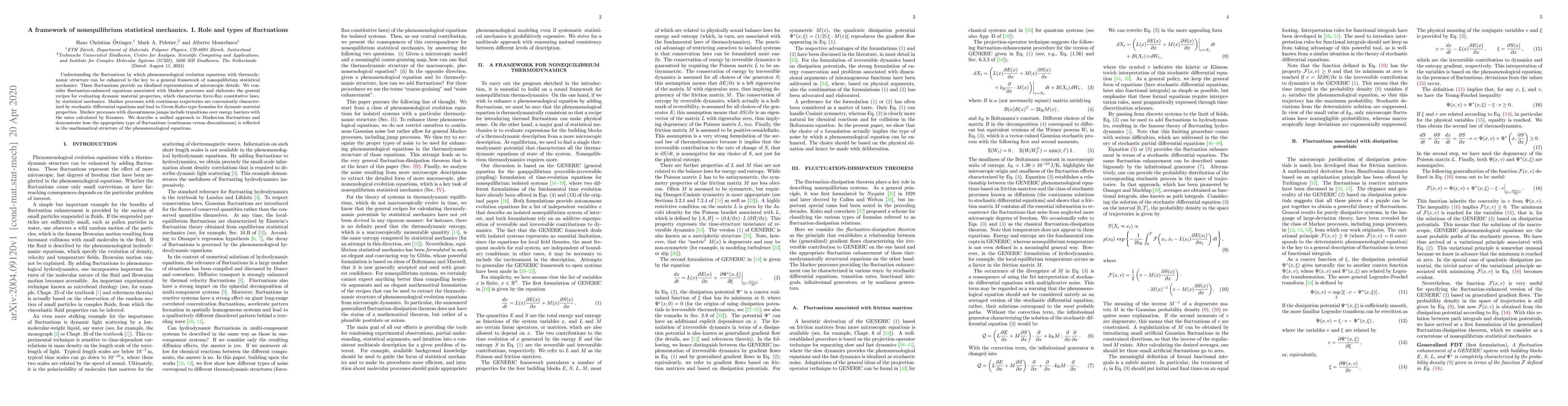 This paper introduces a framework for nonequilibrium statistical mechanics focusing on the role and type of fluctuations in Markov processes. It provides a unified approach to evaluating dynamic material properties, distinguishing between continuous and discontinuous Markovian fluctuations and linking these to the phenomenological equations' mathematical structure.