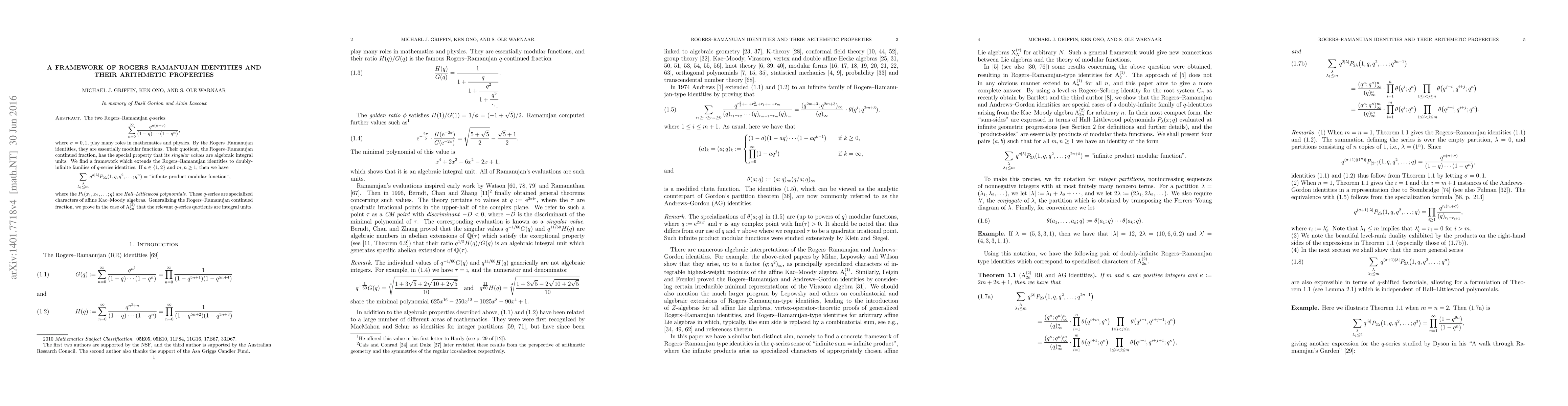 This paper develops a framework extending the Rogers-Ramanujan identities to a doubly-infinite family of $q$-series identities, utilizing Hall-Littlewood polynomials and affine Kac-Moody algebras. It proves that the quotients of these $q$-series are integral units, generalizing the properties of the Rogers-Ramanujan continued fraction.