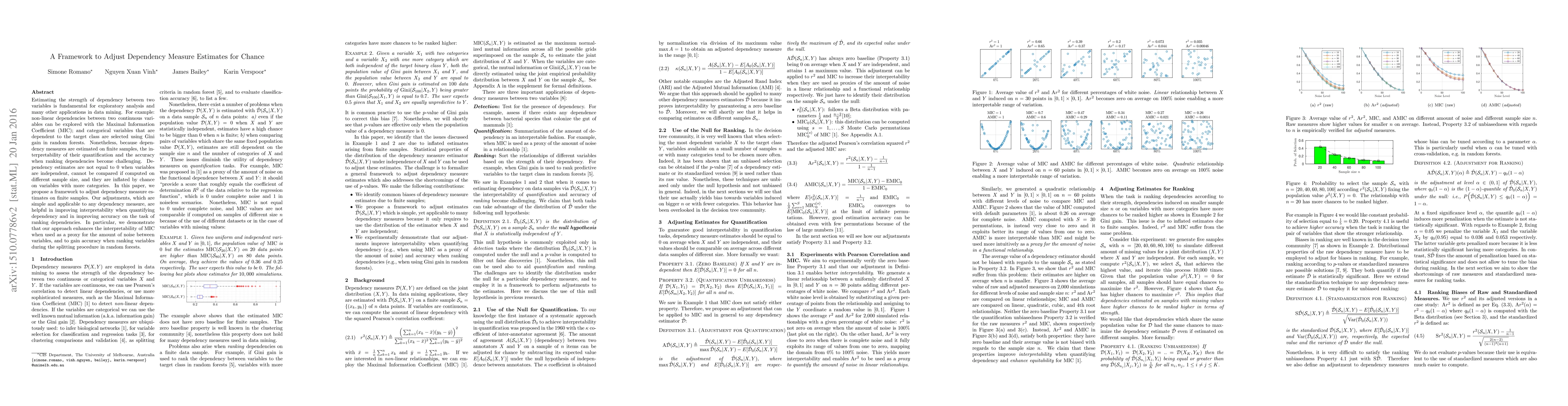 Estimating the strength of dependency between two variables is fundamental for exploratory analysis and many other applications in data mining. For example: non-linear dependencies between two continuous variables can be explored with the Maximal Information Coefficient (MIC); and categorical variables that are dependent to the target class are selected using Gini gain in random forests. Nonetheless, because dependency measures are estimated on finite samples, the interpretability of their quantification and the accuracy when ranking dependencies become challenging. Dependency estimates are not equal to 0 when variables are independent, cannot be compared if computed on different sample size, and they are inflated by chance on variables with more categories. In this paper, we propose a framework to adjust dependency measure estimates on finite samples. Our adjustments, which are simple and applicable to any dependency measure, are helpful in improving interpretability when quantifying dependency and in improving accuracy on the task of ranking dependencies. In particular, we demonstrate that our approach enhances the interpretability of MIC when used as a proxy for the amount of noise between variables, and to gain accuracy when ranking variables during the splitting procedure in random forests.