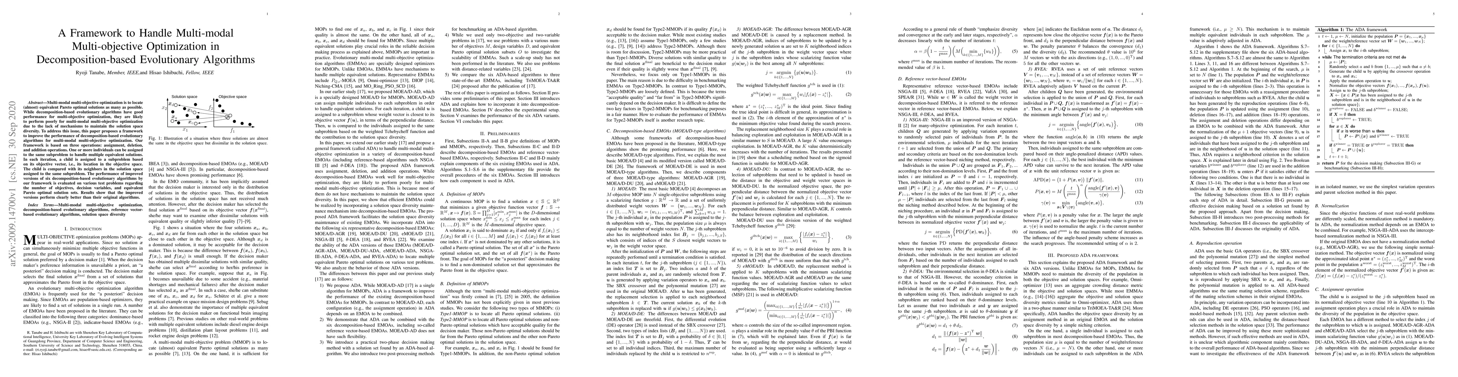 This paper proposes a framework to enhance decomposition-based evolutionary algorithms for multi-modal multi-objective optimization by introducing assignment, deletion, and addition operations to maintain solution space diversity. The improved versions of six algorithms show better performance on various test problems compared to their original forms.