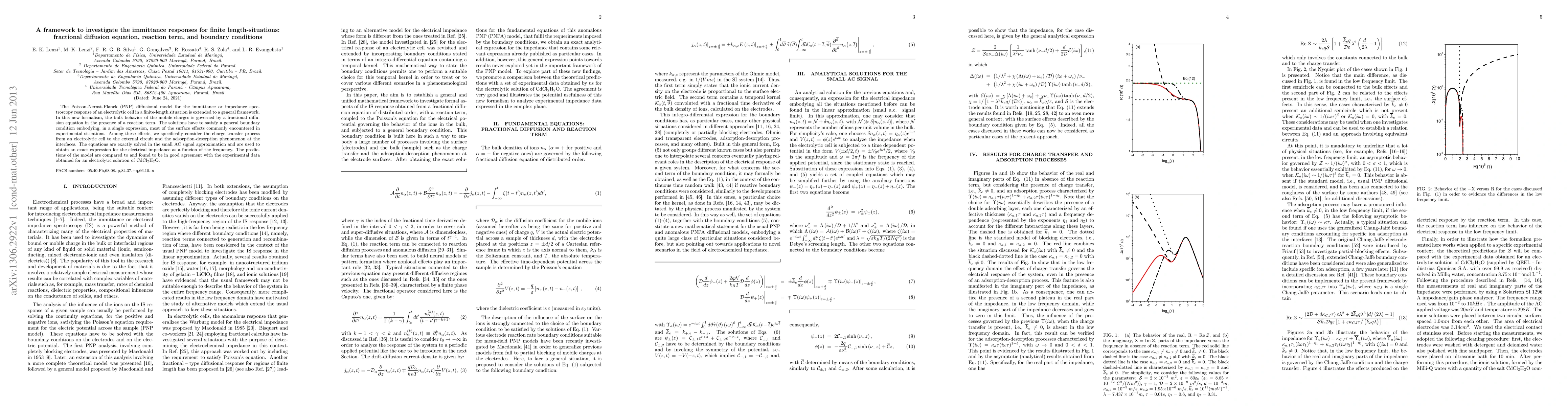 The Poisson-Nernst-Planck (PNP) diffusional model for the immittance or impedance spectroscopy response of an electrolytic cell in a finite-length situation is extended to a general framework. In this new formalism, the bulk behavior of the mobile charges is governed by a fractional diffusion equation in the presence of a reaction term. The solutions have to satisfy a general boundary condition embodying, in a single expression, most of the surface effects commonly encountered in experimental situations. Among these effects, we specifically consider the charge transfer process from an electrolytic cell to the external circuit and the adsorption-desorption phenomenon at the interfaces. The equations are exactly solved in the small AC signal approximation and are used to obtain an exact expression for the electrical impedance as a funcion of the frequency. The predictions of the model are compared to and found to be in good agreement with the experimental data obtained for an electrolytic solution of CdCl2H20.