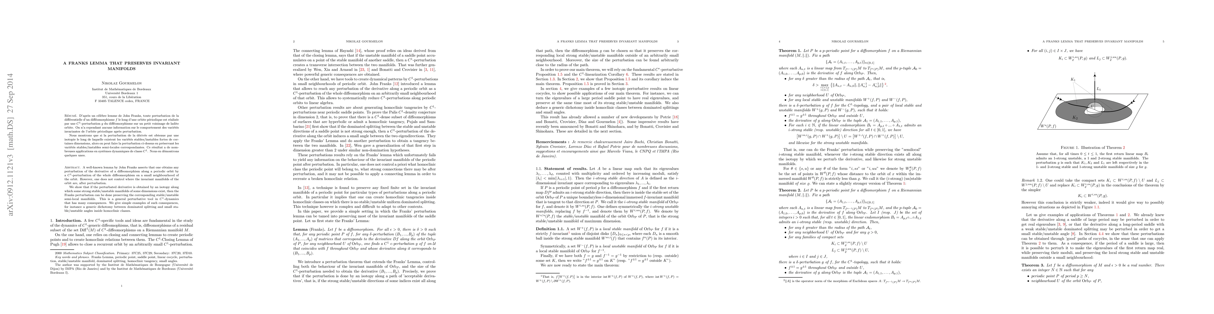 A well-known lemma by John Franks asserts that one obtains any perturbation of the derivative of a diffeomorphism along a periodic orbit by a $C^1$-perturbation of the whole diffeomorphism on a small neighbourhood of the orbit. However, one does not control where the invariant manifolds of the orbit are, after perturbation. We show that if the perturbated derivative is obtained by an isotopy along which some strong stable/unstable manifolds of some dimensions exist, then the Franks perturbation can be done preserving the corresponding stable/unstable semi-local manifolds. This is a general perturbative tool in $C^1$-dynamics that has many consequences. We give simple examples of such consequences, for instance a generic dichotomy between dominated splitting and small stable/unstable angles inside homoclinic classes