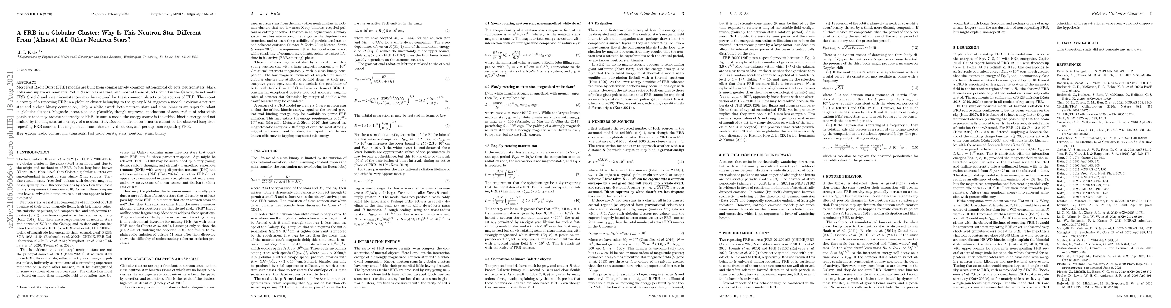 Most Fast Radio Burst (FRB) models are built from comparatively common astronomical objects: neutron stars, black holes and supernova remnants. Yet FRB sources are rare, and most of these objects, found in the Galaxy, do not make FRB. Special and rare circumstances may be required for these common objects to be sources of FRB. The recent discovery of a repeating FRB in a globular cluster belonging to the galaxy M81 suggests a model involving a neutron star and a close binary companion, likely a white dwarf; both neutron stars and close binaries are superabundant in globular clusters. Magnetic interaction is a plausible, though unproven, mechanism of acceleration of relativistic particles that may radiate coherently as FRB. Double neutron star binaries cannot be the observed long-lived repeating FRB sources, but might make much shorter lived sources, and perhaps non-repeating FRB.