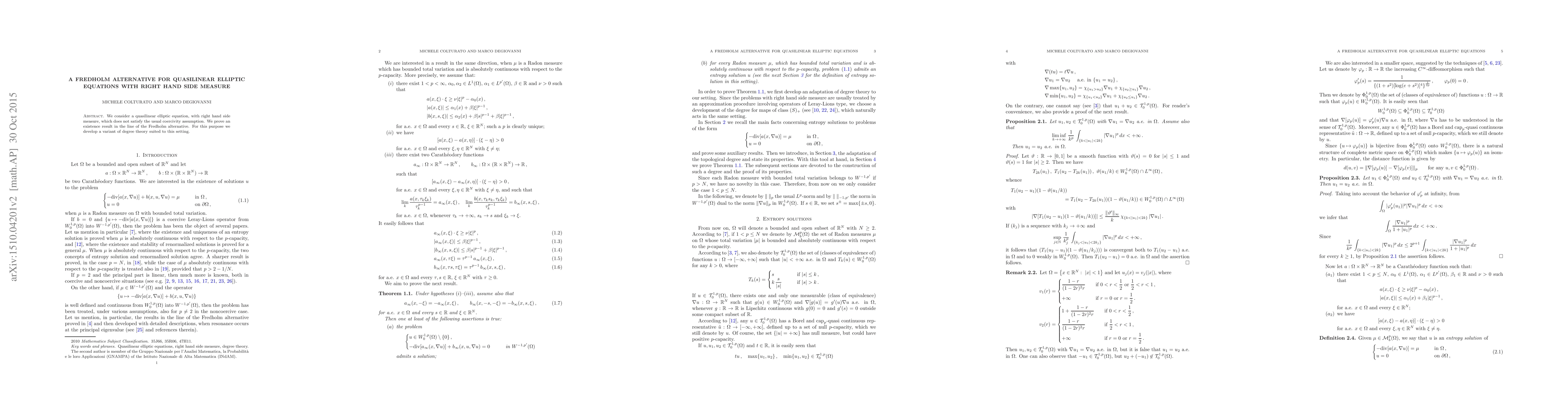 This paper proves an existence result for quasilinear elliptic equations driven by a measure, bypassing the usual coercivity assumption. It utilizes a variant of degree theory to establish a Fredholm alternative in this context.