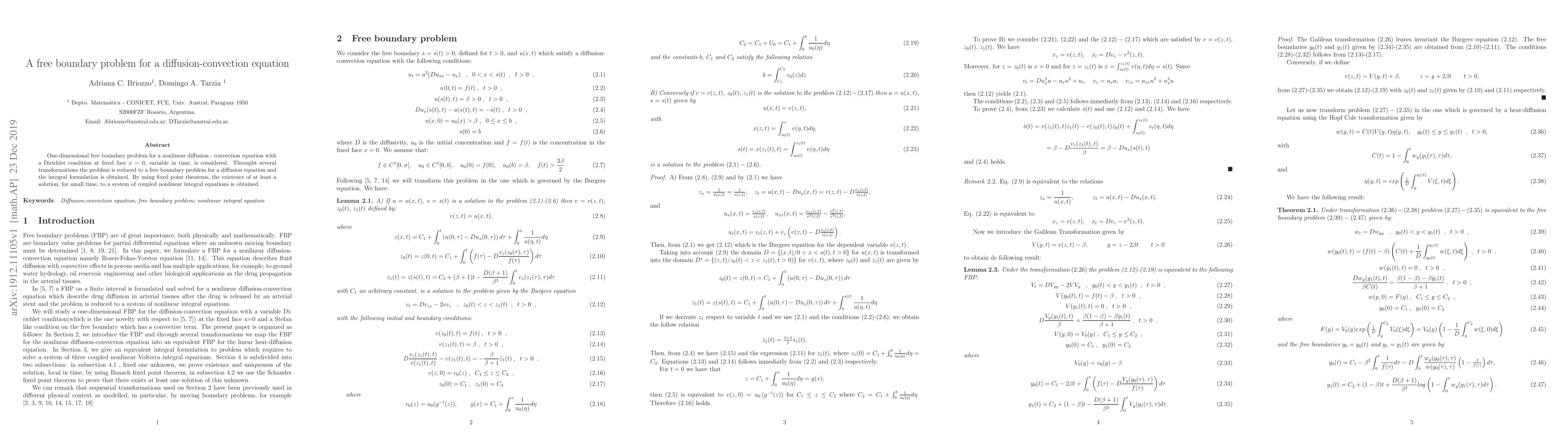 This paper addresses a one-dimensional free boundary problem for a nonlinear diffusion-convection equation with a time-varying Dirichlet condition. It transforms the problem into a free boundary problem for a diffusion equation and proves the existence of a solution for small time using fixed point theorems.