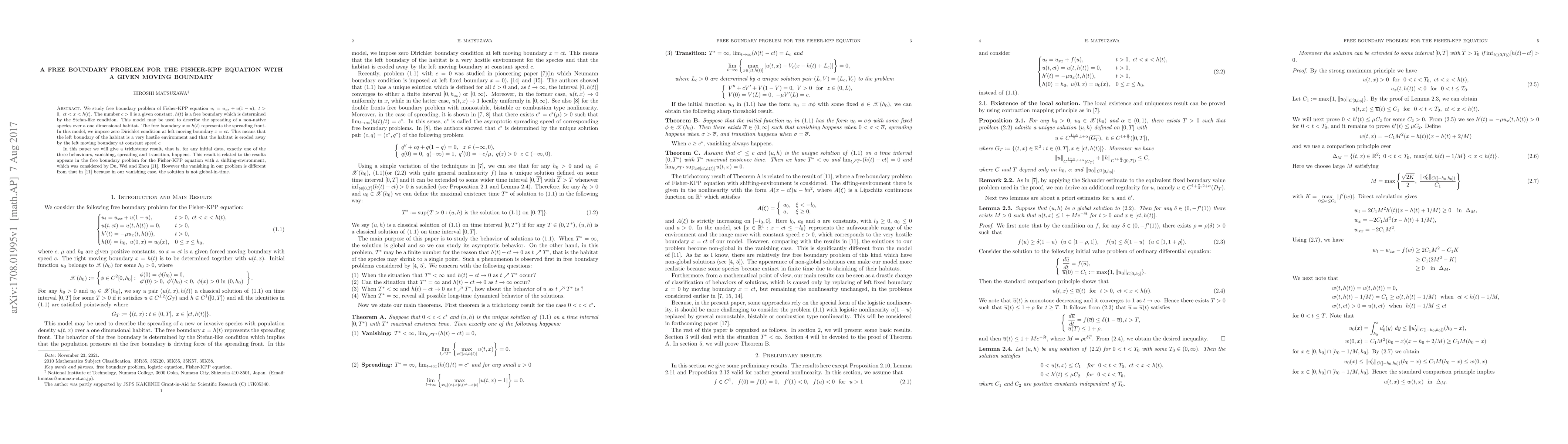 Researchers studied a free boundary problem for the Fisher-KPP equation, which models the spread of a non-native species, finding that any initial data will lead to exactly one of three behaviors: vanishing, spreading, or transition, with implications for understanding habitat invasion dynamics.