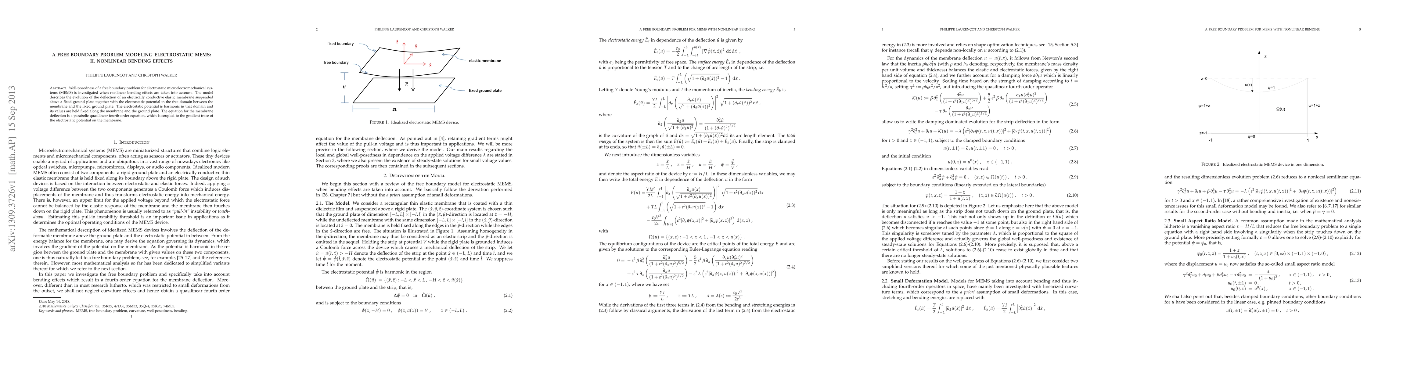 This paper investigates the well-posedness of a free boundary problem for electrostatic MEMS, considering nonlinear bending effects. It models the deflection of an electrically conductive elastic membrane and the electrostatic potential between it and a fixed ground plate, using a coupled parabolic quasilinear fourth-order equation.