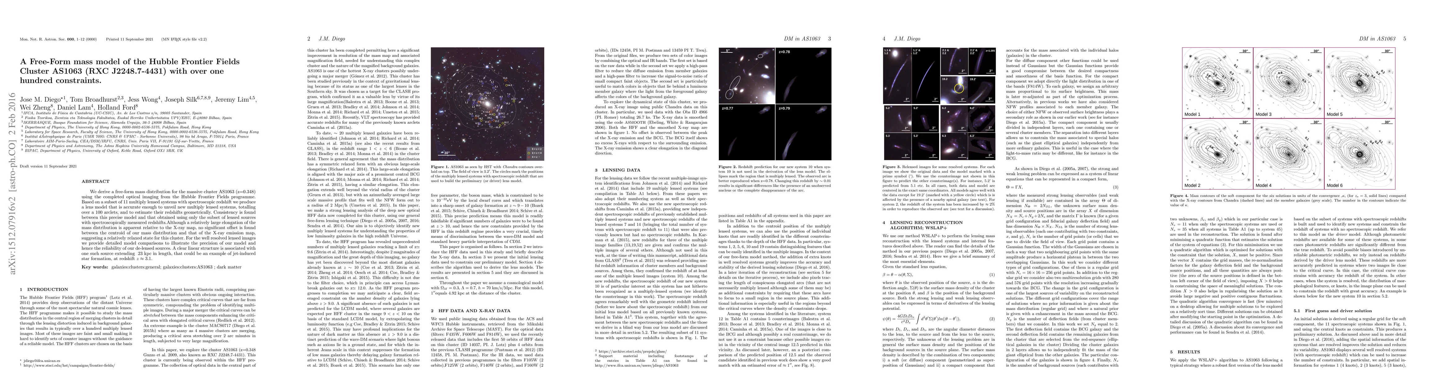We derive a free-form mass distribution for the massive cluster AS1063 (z=0.348) using the completed optical imaging from the Hubble Frontier Fields programme. Based on a subset of 11 multiply lensed systems with spectroscopic redshift we produce a lens model that is accurate enough to unveil new multiply lensed systems, totalling over a 100 arclets, and to estimate their redshifts geometrically. Consistency is found between this precise model and that obtained using only the subset of lensed sources with spectroscopically measured redshifts. Although a relatively large elongation of the mass distribution is apparent relative to the X-ray map, no significant offset is found between the centroid of our mass distribution and that of the X-ray emission map, suggesting a relatively relaxed state for this cluster. For the well resolved lensed images we provide detailed model comparisons to illustrate the precision of our model and hence the reliability of our de-lensed sources. A clear linear structure is associated with one such source extending approx. 23 kpc in length, that could be an example of jet-induced star formation, at redshift z=3.1.