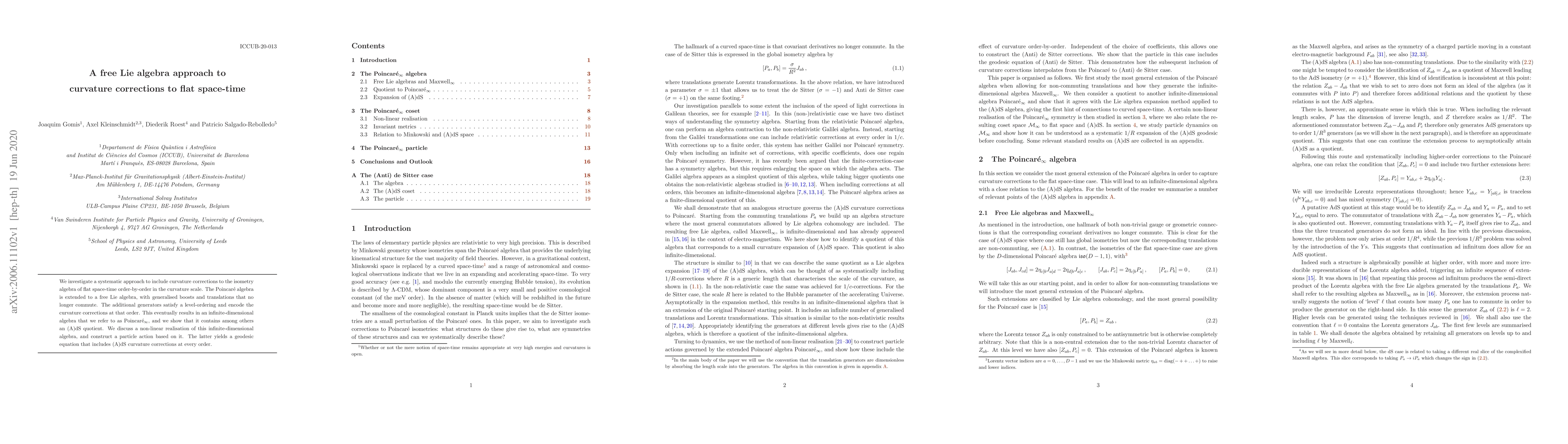This paper proposes a free Lie algebra method to systematically incorporate curvature corrections into the Poincaré algebra of flat space-time, resulting in an infinite-dimensional algebra called Poincaré${}_\infty$ that includes an (A)dS quotient. The approach constructs a particle action that yields a geodesic equation with (A)dS corrections at every order.