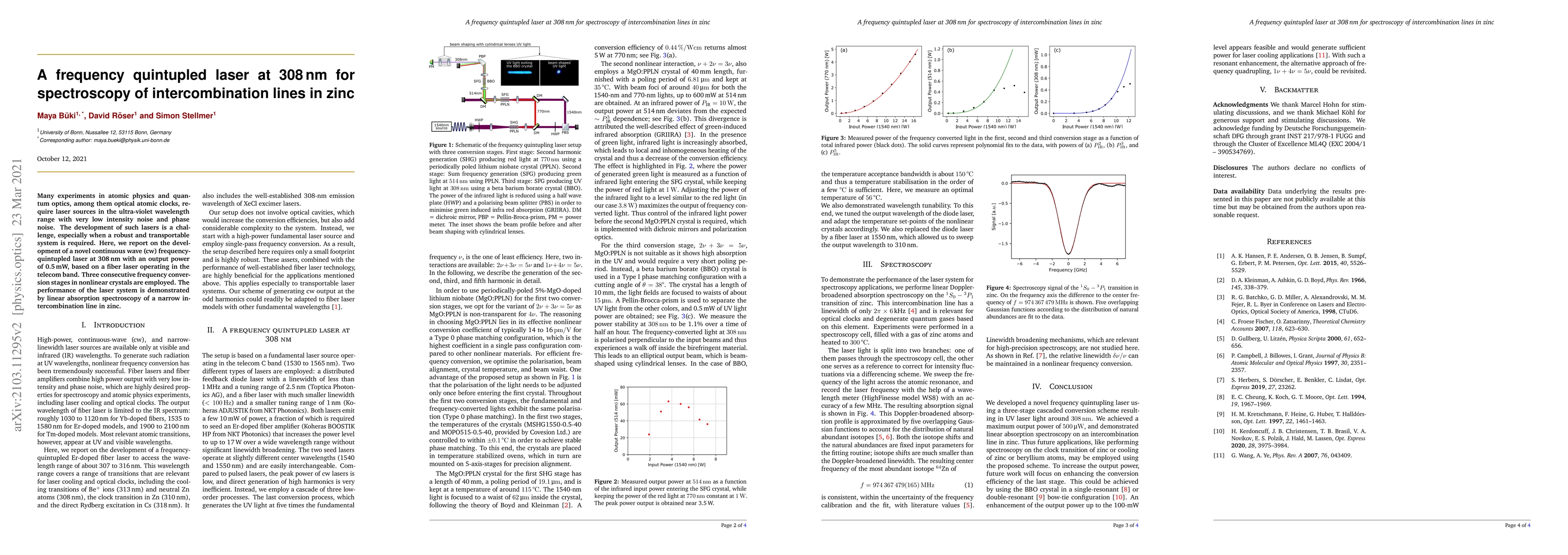 Many experiments in atomic physics and quantum optics, among them optical atomic clocks, require laser sources in the ultra-violet wavelength range with very low intensity noise and phase noise. The development of such lasers is a challenge, especially when a robust and transportable system is required. Here, we report on the development of a novel continuous wave (cw) frequency-quintupled laser at 308 nm with an output power of 0.5 mW, based on a fiber laser operating in the telecom band. Three consecutive frequency conversion stages in nonlinear crystals are employed. The performance of the laser system is demonstrated by linear absorption spectroscopy of a narrow intercombination line in zinc.