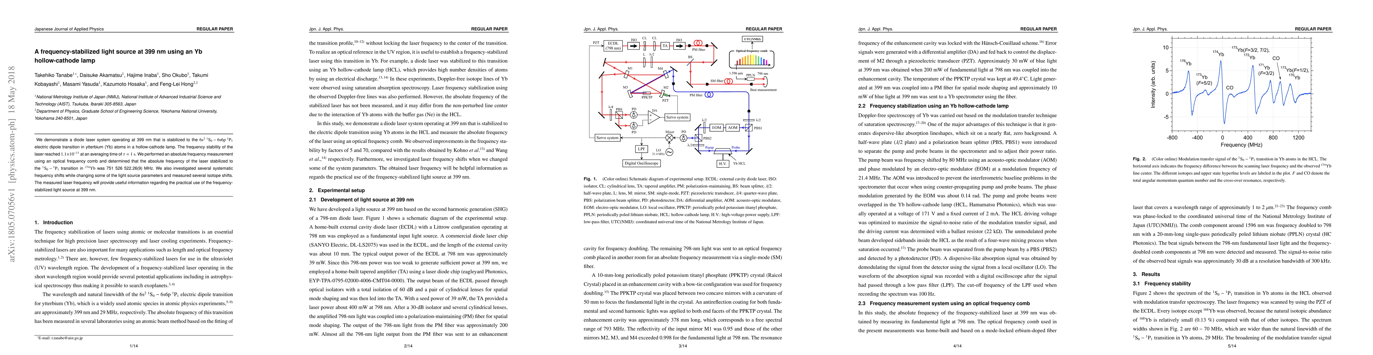This paper presents a diode laser system at 399 nm stabilized to a specific Yb atomic transition in a hollow-cathode lamp, achieving a frequency stability of $1.1 \times 10^{-11}$ and an absolute frequency of 751 526 522.26(9) MHz. The study also examines systematic frequency shifts and isotope shifts for practical applications.