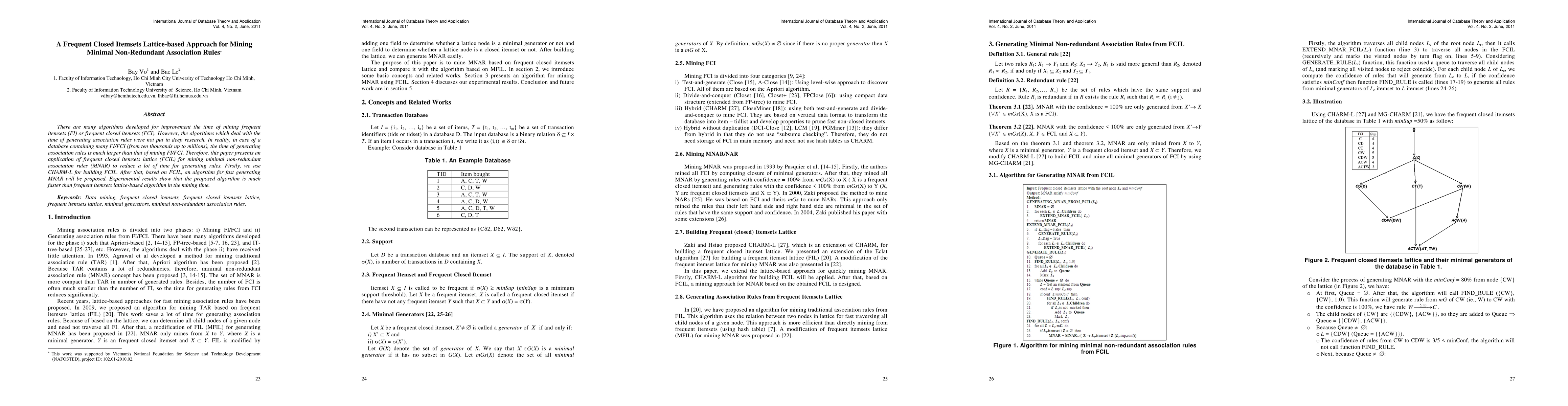 The research proposes a method for mining minimal non-redundant association rules based on frequent closed itemsets lattice, using CHARM-L for building FCIL and MG-CHARM for mining minimal generators of FCI.