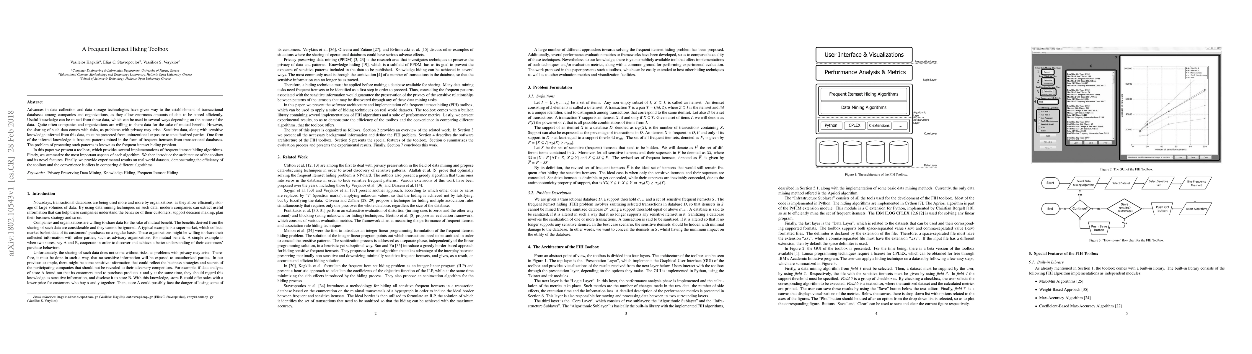 Advances in data collection and data storage technologies have given way to the establishment of transactional databases among companies and organizations, as they allow enormous amounts of data to be stored efficiently. Useful knowledge can be mined from these data, which can be used in several ways depending on the nature of the data. Quite often companies and organizations are willing to share data for the sake of mutual benefit. However, the sharing of such data comes with risks, as problems with privacy may arise. Sensitive data, along with sensitive knowledge inferred from this data, must be protected from unintentional exposure to unauthorized parties. One form of the inferred knowledge is frequent patterns mined in the form of frequent itemsets from transactional databases. The problem of protecting such patterns is known as the frequent itemset hiding problem. In this paper we present a toolbox, which provides several implementations of frequent itemset hiding algorithms. Firstly, we summarize the most important aspects of each algorithm. We then introduce the architecture of the toolbox and its novel features. Finally, we provide experimental results on real world datasets, demonstrating the efficiency of the toolbox and the convenience it offers in comparing different algorithms.