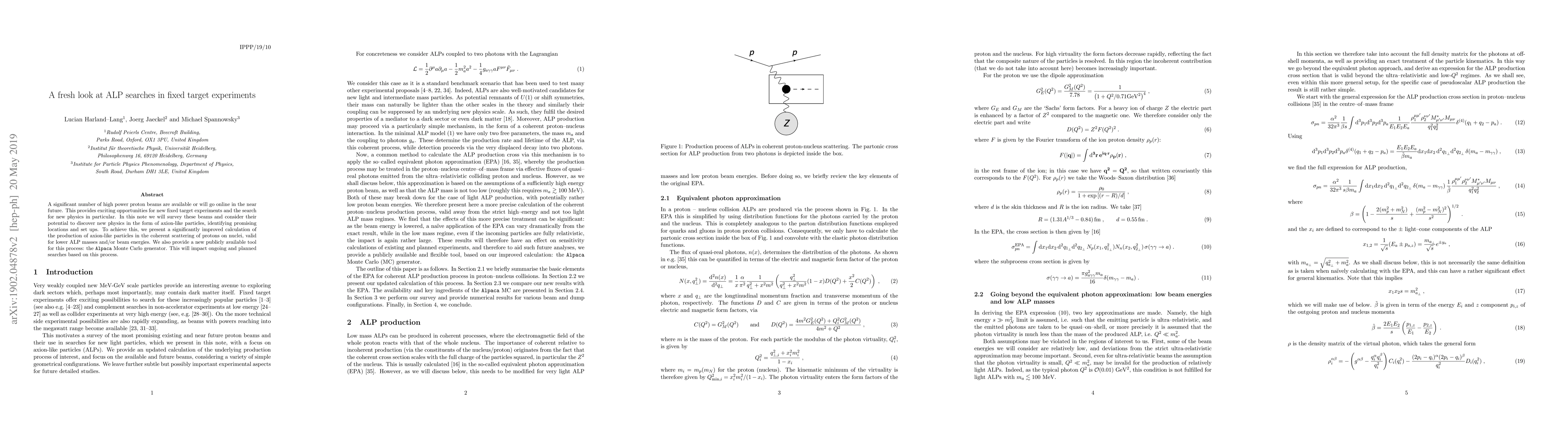 A significant number of high power proton beams are available or will go online in the near future. This provides exciting opportunities for new fixed target experiments and the search for new physics in particular. In this note we will survey these beams and consider their potential to discover new physics in the form of axion-like particles, identifying promising locations and set ups. To achieve this, we present a significantly improved calculation of the production of axion-like particles in the coherent scattering of protons on nuclei, valid for lower ALP masses and/or beam energies. We also provide a new publicly available tool for this process: the Alpaca Monte Carlo generator. This will impact ongoing and planned searches based on this process.