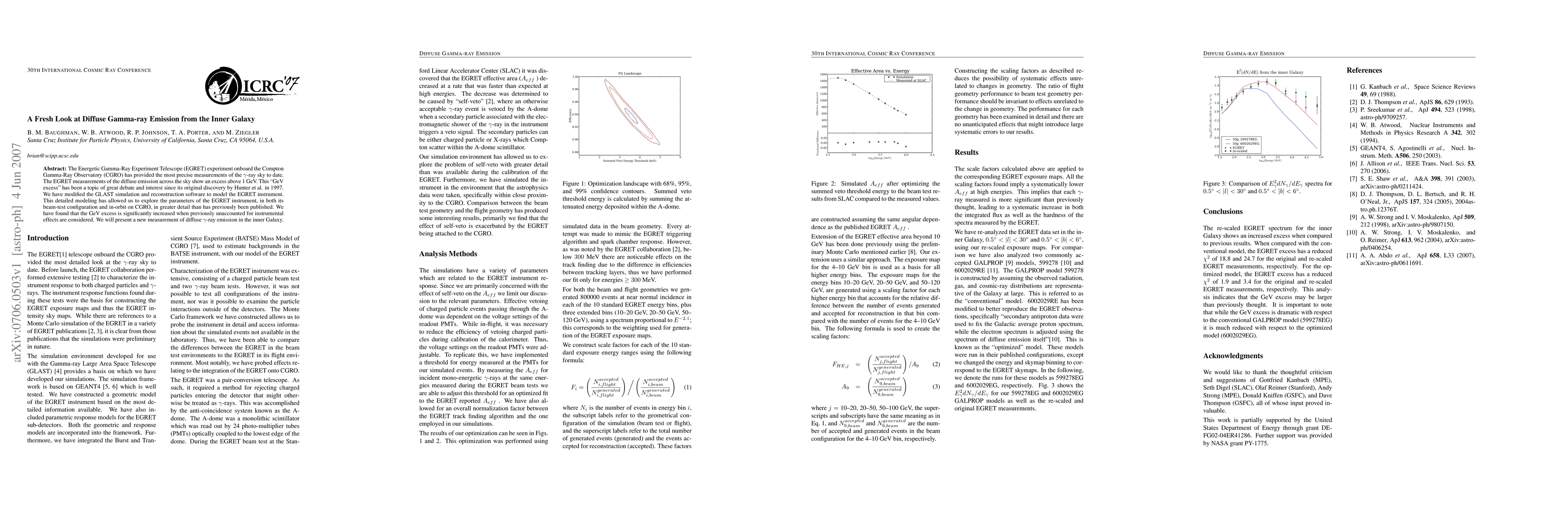 The Energetic Gamma-Ray Experiment Telescope (EGRET) experiment onboard the Compton Gamma-Ray Observatory (CGRO) has provided the most precise measurements of the gamma-ray sky to date. The EGRET measurements of the diffuse emission across the sky show an excess above 1 GeV. This ``GeV excess'' has been a topic of great debate and interest since its original discovery by Hunter et al. in 1997. We have modified the GLAST simulation and reconstruction software to model the EGRET instrument. This detailed modeling has allowed us to explore the parameters of the EGRET instrument, in both its beam-test configuration and in-orbit on CGRO, in greater detail than has previously been published. We have found that the GeV excess is significantly increased when previously unaccounted for instrumental effects are considered. We will present a new measurement of diffuse gamma-ray emission in the inner Galaxy.