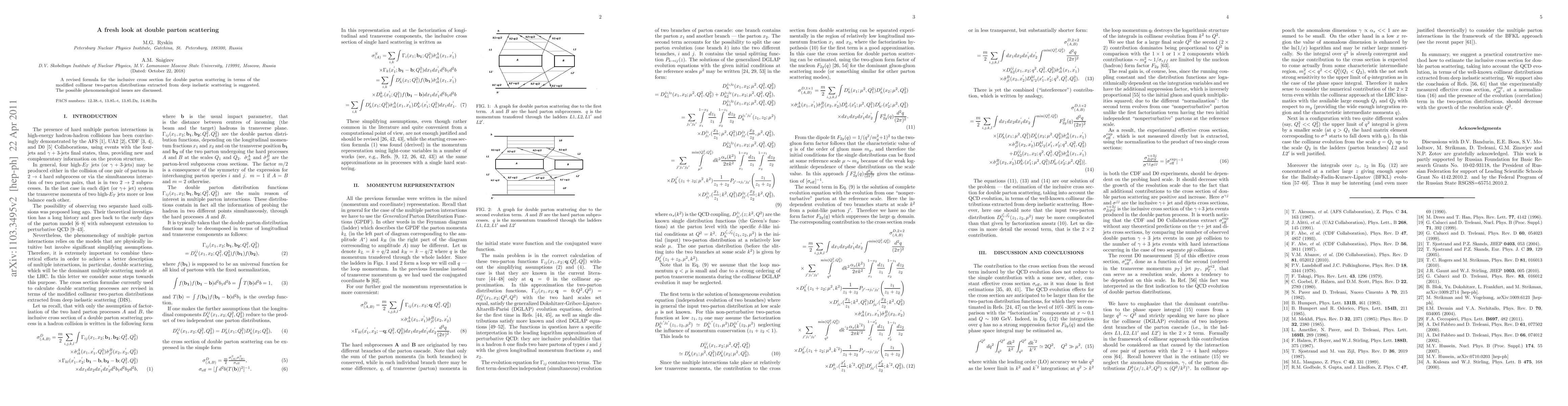 A revised formula for the inclusive cross section for double parton scattering in terms of the modified collinear two-parton distributions extracted from deep inelastic scattering is suggested. The possible phenomenological issues are discussed.