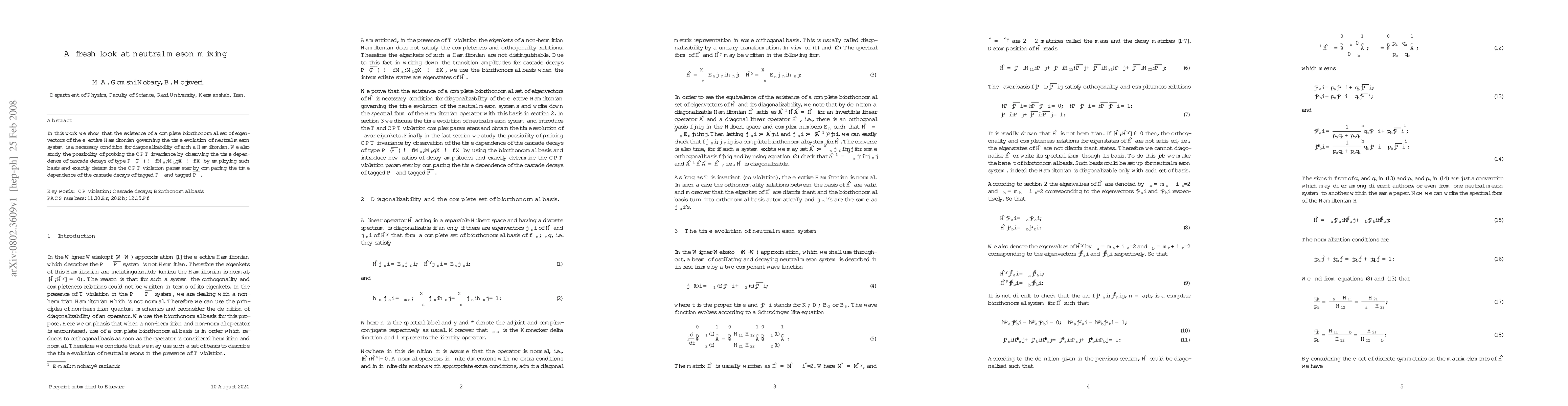 In this work we show that the existence of a complete biorthonormal set of eigenvectors of the effective Hamiltonian governing the time evolution of neutral meson system is a necessary condition for diagonalizability of such a Hamiltonian. We also study the possibility of probing the $CPT$ invariance by observing the time dependence of cascade decays of type $P^{\circ}(\bar{P^{\circ}})\to \{M_a,M_b\}X\to fX$ by employing such basis and exactly determine the $CPT$ violation parameter by comparing the time dependence of the cascade decays of tagged $P^{\circ}$ and tagged $\bar{P^{\circ}}$.