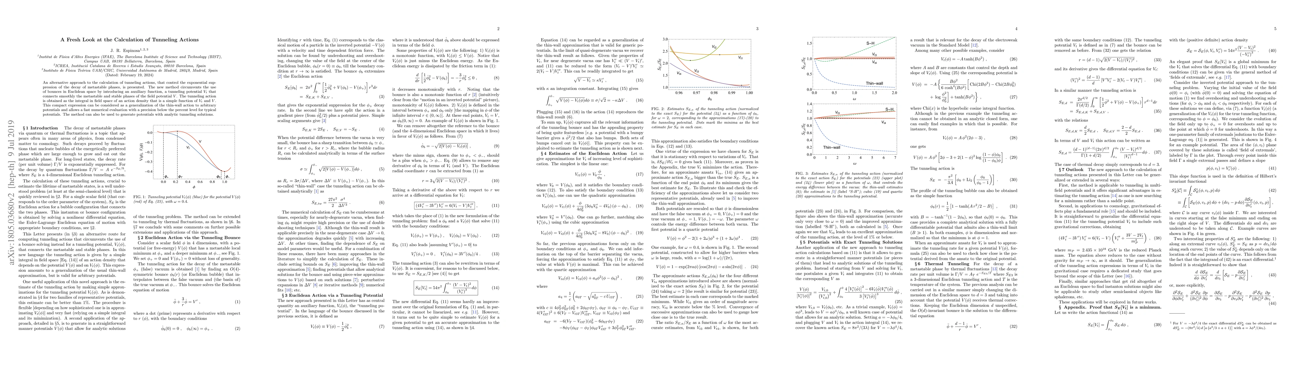 An alternative approach to the calculation of tunneling actions, that control the exponential suppression of the decay of metastable phases, is presented. The new method circumvents the use of bounces in Euclidean space by introducing an auxiliary function, a tunneling potential $V_t$ that connects smoothly the metastable and stable phases of the field potential $V$. The tunneling action is obtained as the integral in field space of an action density that is a simple function of $V_t$ and $V$. This compact expression can be considered as a generalization of the thin-wall action to arbitrary potentials and allows a fast numerical evaluation with a precision below the percent level for typical potentials. The method can also be used to generate potentials with analytic tunneling solutions.