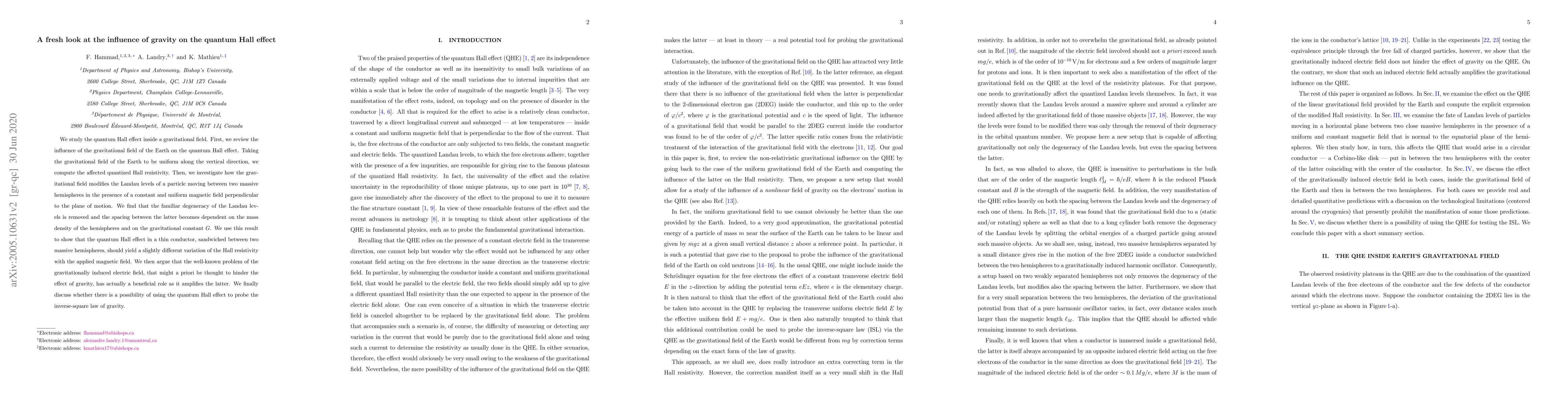 We study the quantum Hall effect inside a gravitational field. First, we review the influence of the gravitational field of the Earth on the quantum Hall effect. Taking the gravitational field of the Earth to be uniform along the vertical direction, we compute the affected quantized Hall resistivity. Then, we investigate how the gravitational field modifies the Landau levels of a particle moving between two massive hemispheres in the presence of a constant and uniform magnetic field perpendicular to the plane of motion. We find that the familiar degeneracy of the Landau levels is removed and the spacing between the latter becomes dependent on the mass density of the hemispheres and on the gravitational constant $G$. We use this result to show that the quantum Hall effect in a thin conductor, sandwiched between two massive hemispheres, should yield a slightly different variation of the Hall resistivity with the applied magnetic field. We then argue that the well-known problem of the gravitationally induced electric field, that might a priori be thought to hinder the effect of gravity, has actually a beneficial role as it amplifies the latter. We finally discuss whether there is a possibility of using the quantum Hall effect to probe the inverse-square law of gravity.