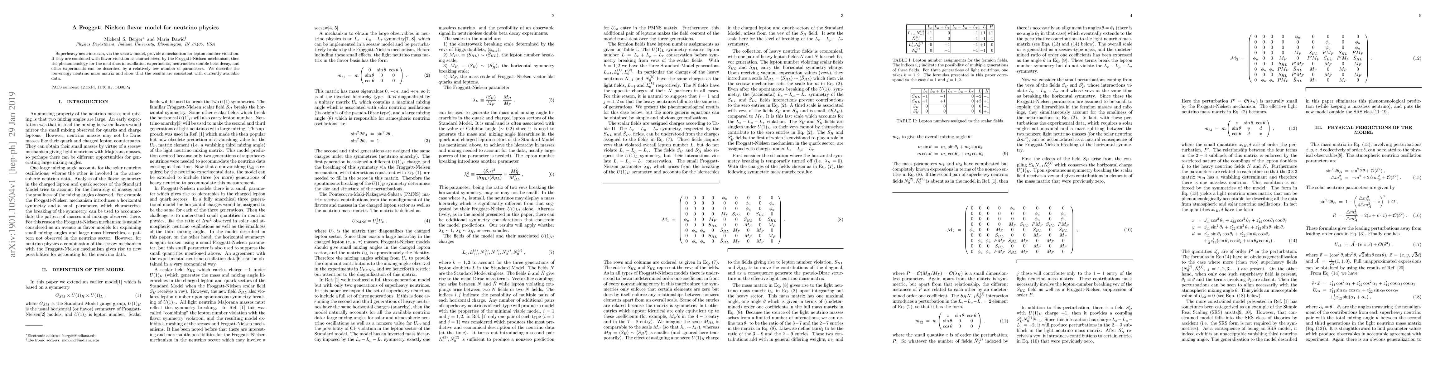 Superheavy neutrinos can, via the seesaw model, provide a mechanism for lepton number violation. If they are combined with flavor violation as characterized by the Froggatt-Nielsen mechanism, then the phenomenology for the neutrinos in oscillation experiments, neutrinoless double beta decay, and other experiments can be described by a relatively few number of parameters. We describe the low-energy neutrino mass matrix and show that the results are consistent with currently available data.
