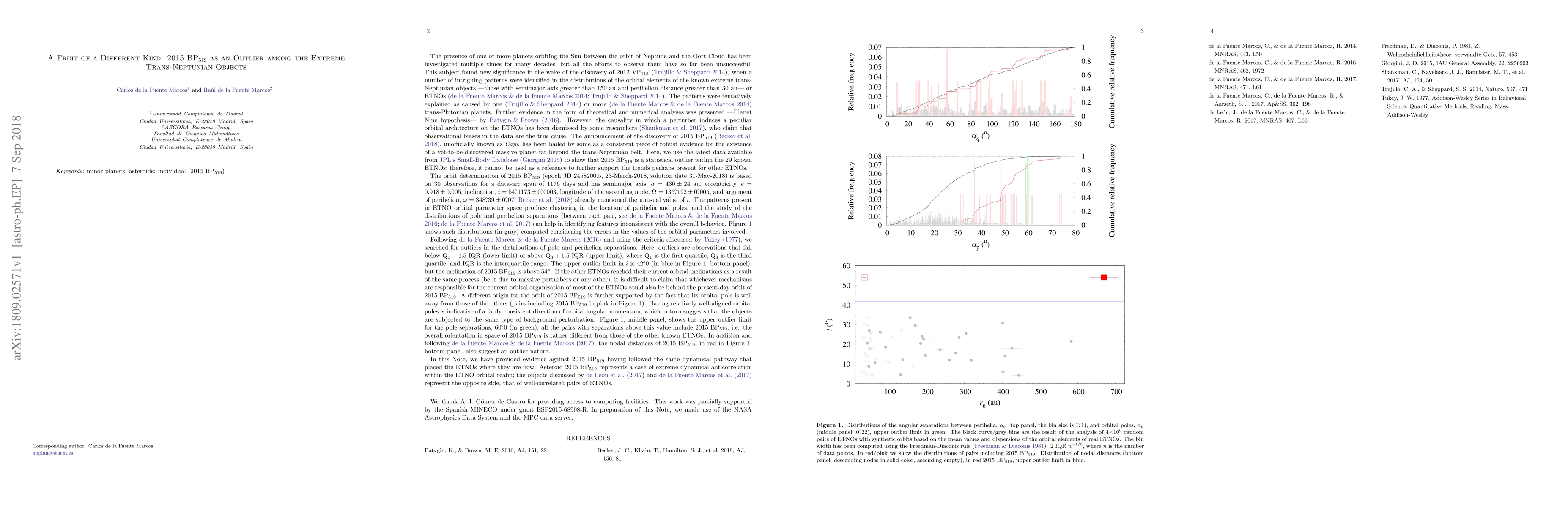 This paper examines the unique orbital characteristics of 2015 BP519, an extreme trans-Neptunian object (ETNO), and finds it to be a statistical outlier among other ETNOs, challenging its use as evidence for a massive planet beyond the trans-Neptunian belt. The object's extreme orbital parameters suggest a different dynamical pathway than other ETNOs.