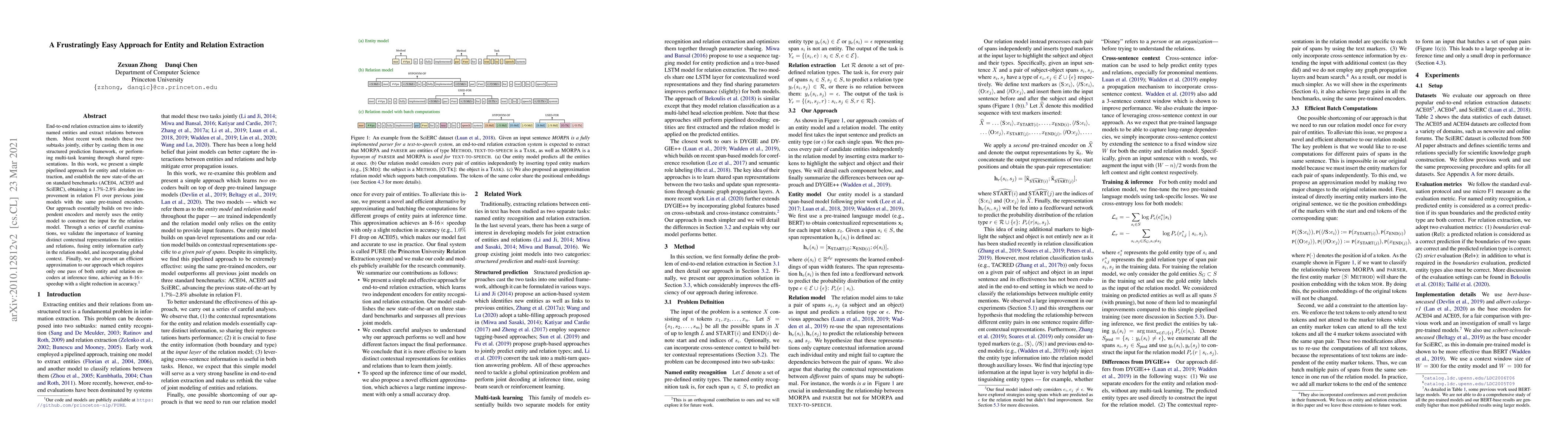 This paper proposes a simple yet effective pipelined approach for entity and relation extraction, achieving state-of-the-art results on multiple benchmarks. It uses two independent encoders, emphasizing the importance of distinct contextual representations and early fusion of entity information.
