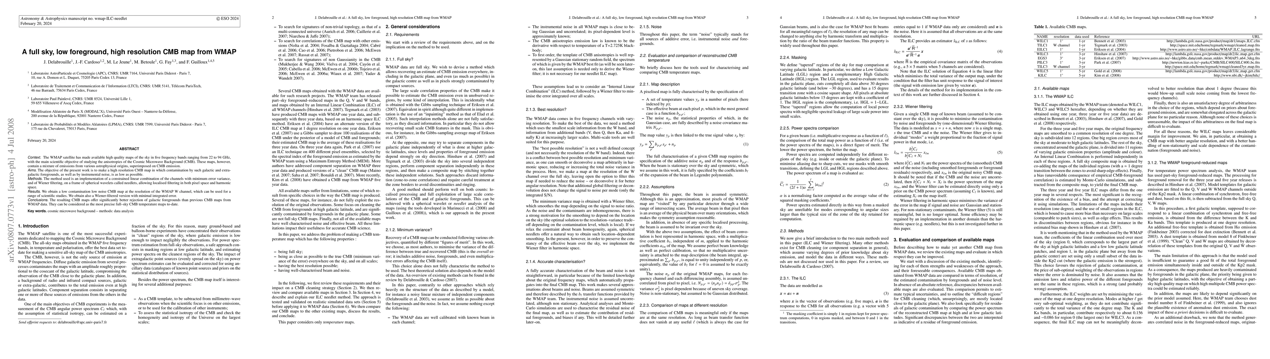 The WMAP satellite produced high-quality CMB maps, and this paper presents a refined, high-resolution CMB map with minimal foreground contamination and noise using advanced filtering techniques, offering the most precise full-sky CMB temperature maps to date.
