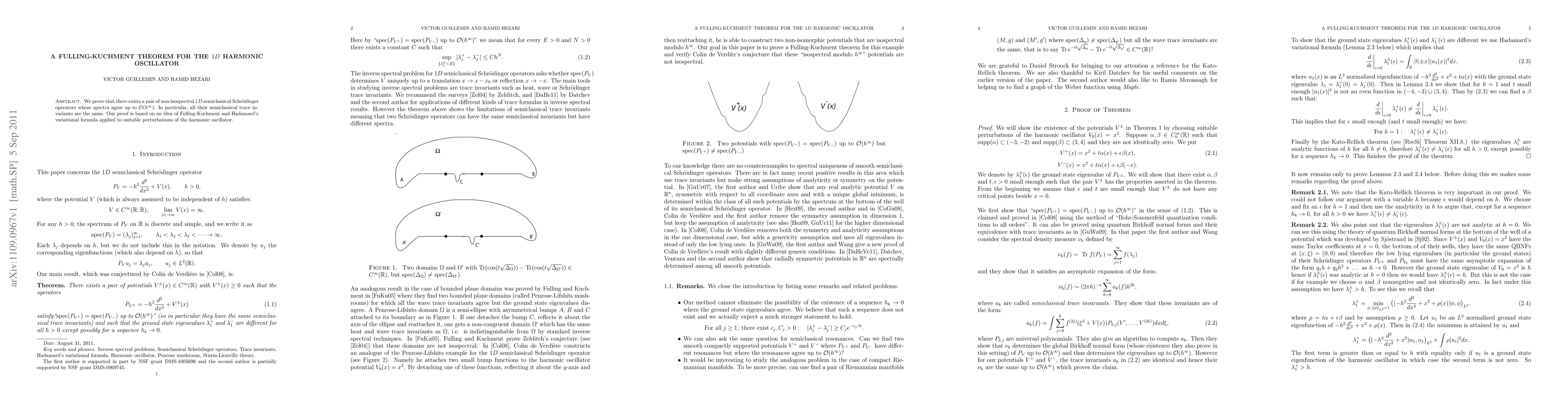 This paper proves the existence of non-isospectral 1D semiclassical Schrödinger operators with identical spectra modulo h^\infty and matching semiclassical trace invariants. The proof leverages Fulling-Kuchment's idea and Hadamard's variational formula applied to harmonic oscillator perturbations.