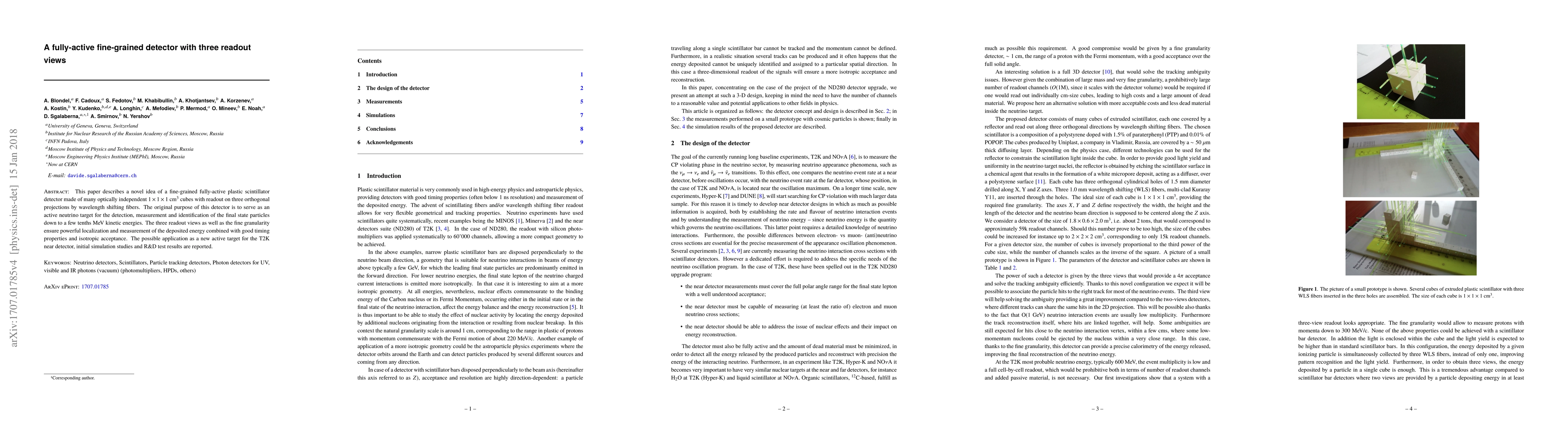 Researchers propose a novel detector design for neutrino detection with fine-grained energy measurement and isotropic acceptance, using a 3D array of small plastic scintillator cubes with wavelength shifting fibers for readout.