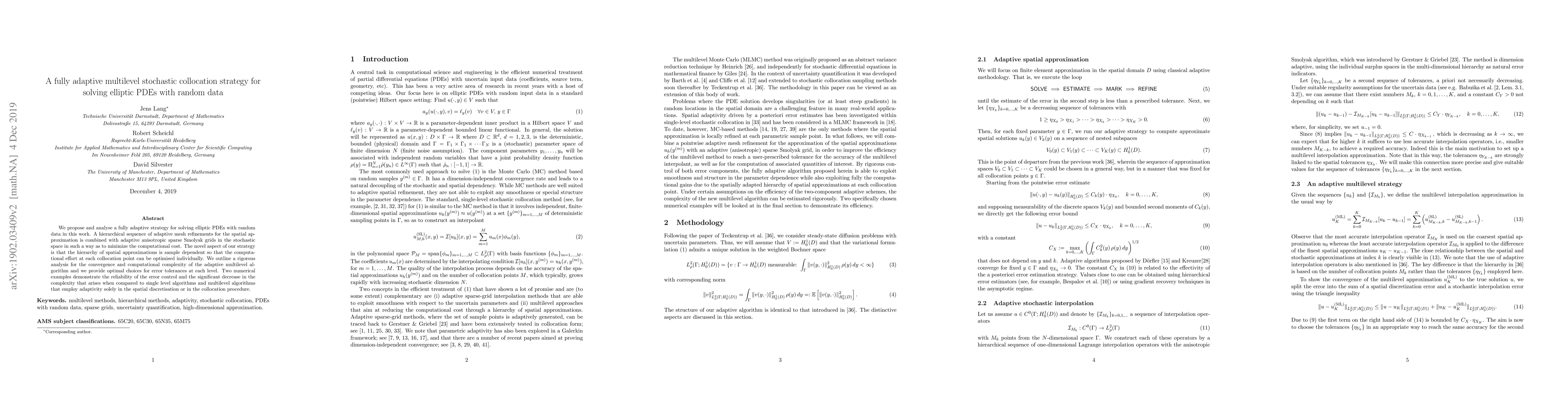 We propose and analyse a fully adaptive strategy for solving elliptic PDEs with random data in this work. A hierarchical sequence of adaptive mesh refinements for the spatial approximation is combined with adaptive anisotropic sparse Smolyak grids in the stochastic space in such a way as to minimize the computational cost. The novel aspect of our strategy is that the hierarchy of spatial approximations is sample dependent so that the computational effort at each collocation point can be optimised individually. We outline a rigorous analysis for the convergence and computational complexity of the adaptive multilevel algorithm and we provide optimal choices for error tolerances at each level. Two numerical examples demonstrate the reliability of the error control and the significant decrease in the complexity that arises when compared to single level algorithms and multilevel algorithms that employ adaptivity solely in the spatial discretisation or in the collocation procedure.