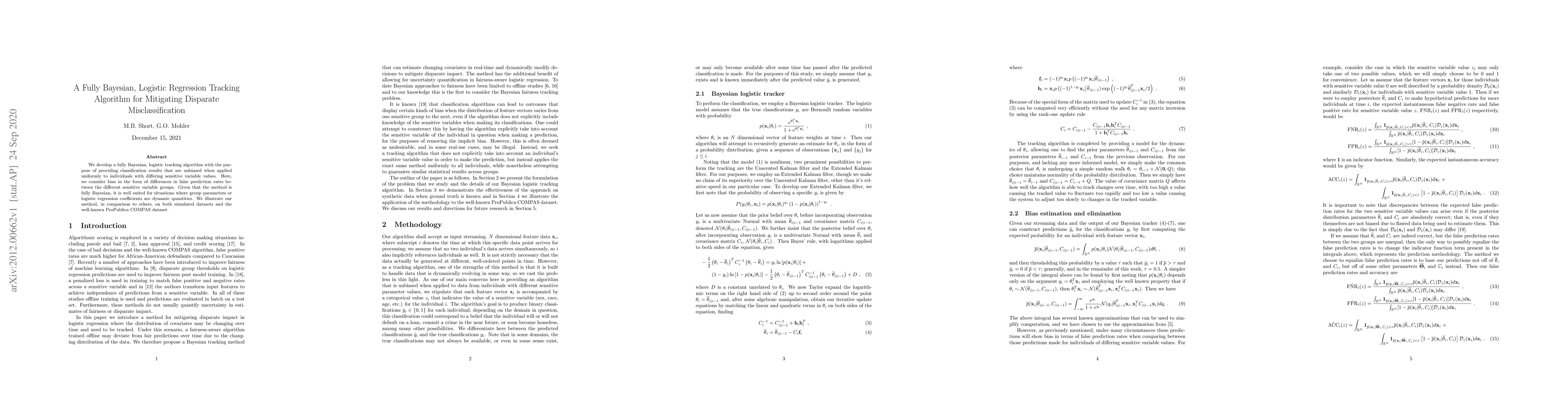 We develop a fully Bayesian, logistic tracking algorithm with the purpose of providing classification results that are unbiased when applied uniformly to individuals with differing sensitive variable values. Here, we consider bias in the form of differences in false prediction rates between the different sensitive variable groups. Given that the method is fully Bayesian, it is well suited for situations where group parameters or logistic regression coefficients are dynamic quantities. We illustrate our method, in comparison to others, on both simulated datasets and the well-known ProPublica COMPAS dataset.