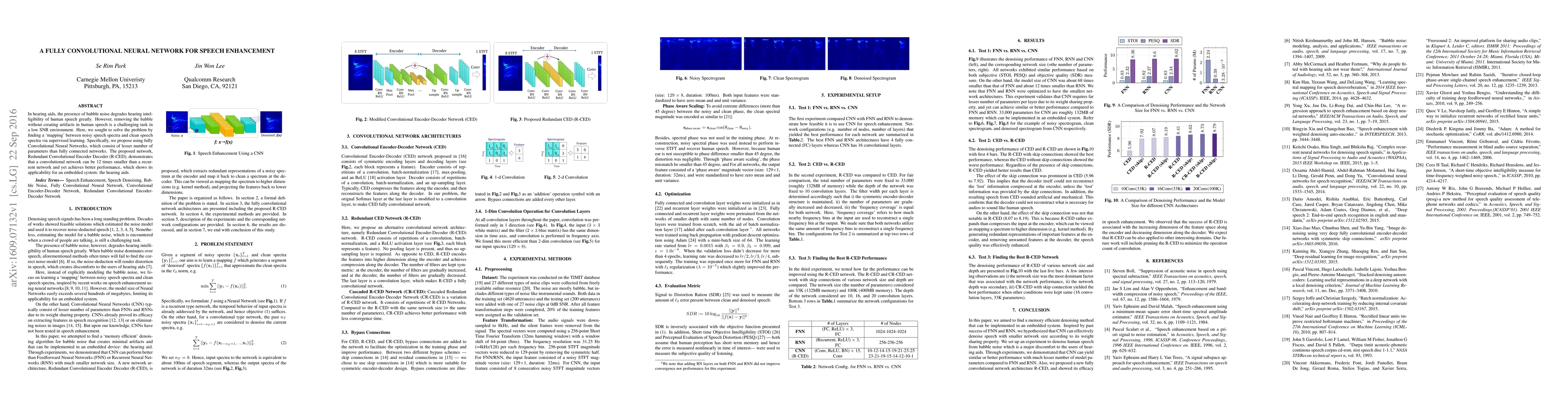 This paper proposes a Redundant Convolutional Encoder Decoder (R-CED) network for enhancing speech in hearing aids by mapping noisy speech spectra to clean ones. The fully convolutional approach is shown to be 12 times smaller than recurrent networks while achieving superior performance, making it suitable for embedded systems like hearing aids.