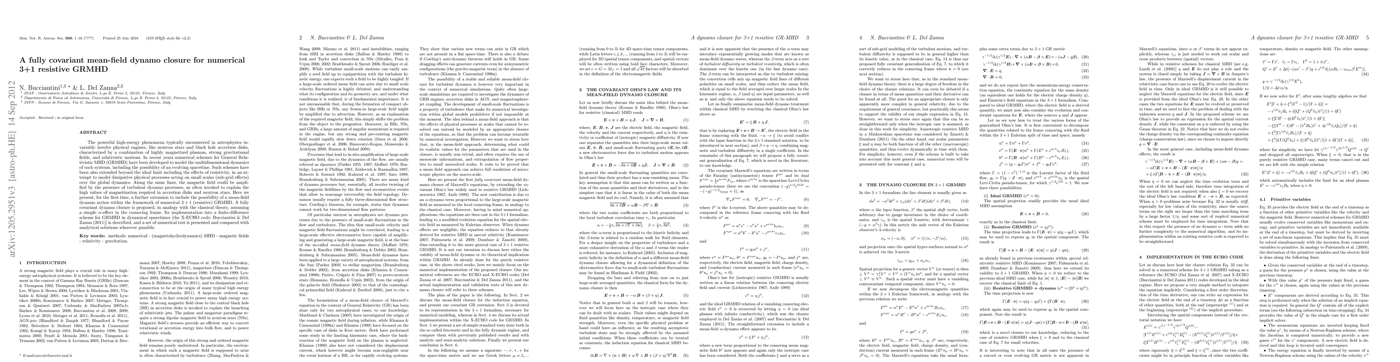 This paper introduces a fully covariant mean-field dynamo closure for resistive General Relativistic Magnetohydrodynamics (GRMHD) simulations, proposing an alpha-effect in the comoving frame to model turbulent dynamo processes. The implementation is demonstrated within the X-ECHO code, with numerical tests compared against analytical solutions.