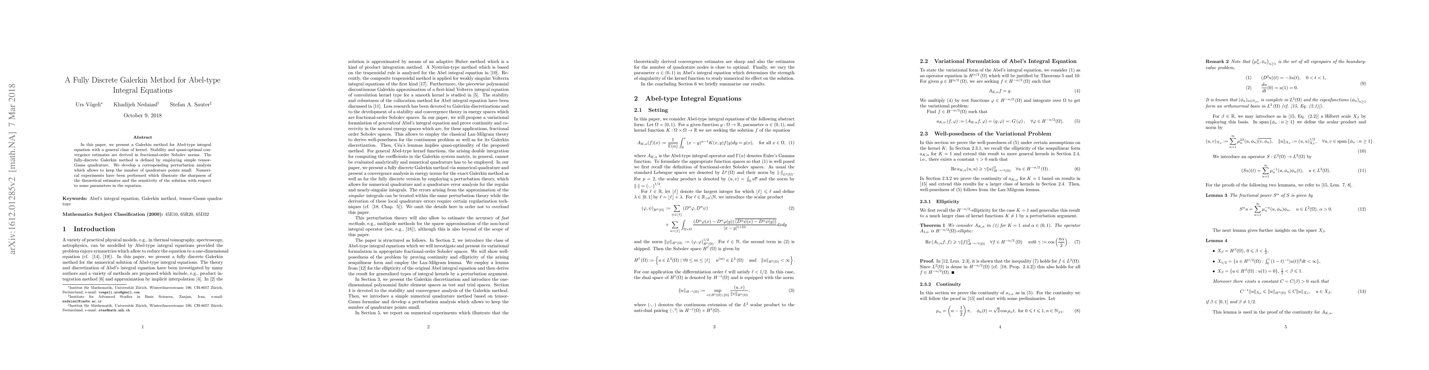 This paper introduces a fully discrete Galerkin method for solving Abel-type integral equations with general kernels, providing stability and quasi-optimal convergence in fractional-order Sobolev norms. Numerical experiments validate the theoretical estimates and demonstrate the method's sensitivity to equation parameters.