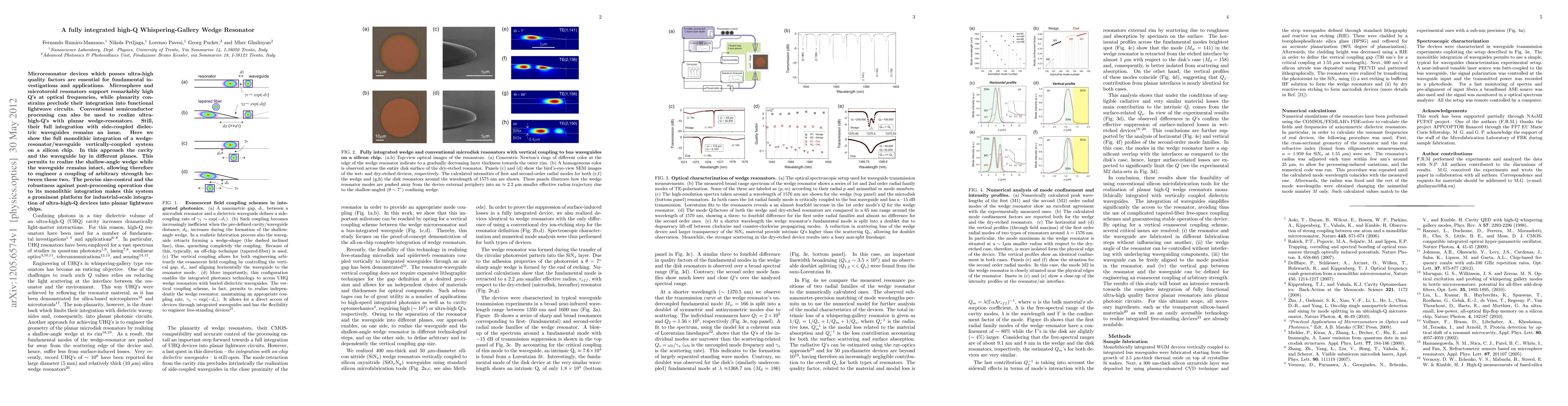 This paper presents a fully integrated high-Q Whispering-Gallery wedge resonator on a silicon chip, enabling precise size-control and robust integration with side-coupled dielectric waveguides, facilitating industrial-scale applications in optical circuits. The unique vertical coupling approach allows for arbitrary coupling strength and maintains the integrity of both the cavity and waveguide.