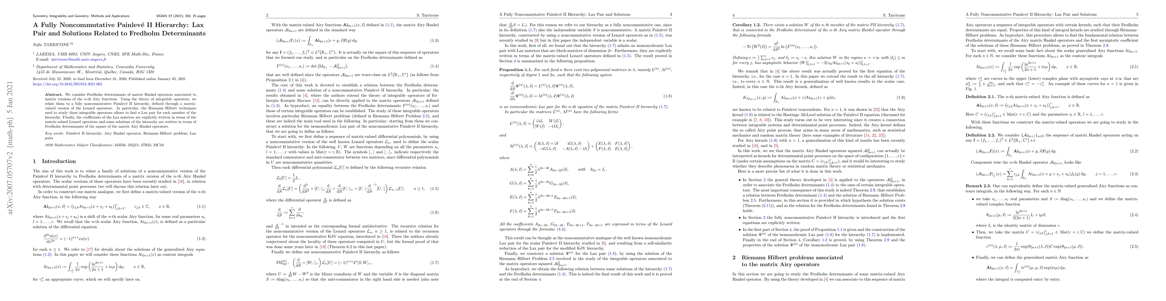 This paper explores the relationship between Fredholm determinants of matrix convolution operators and a fully noncommutative Painlevé II hierarchy, utilizing the Riemann-Hilbert technique to derive a Lax pair and express solutions in terms of Fredholm determinants.