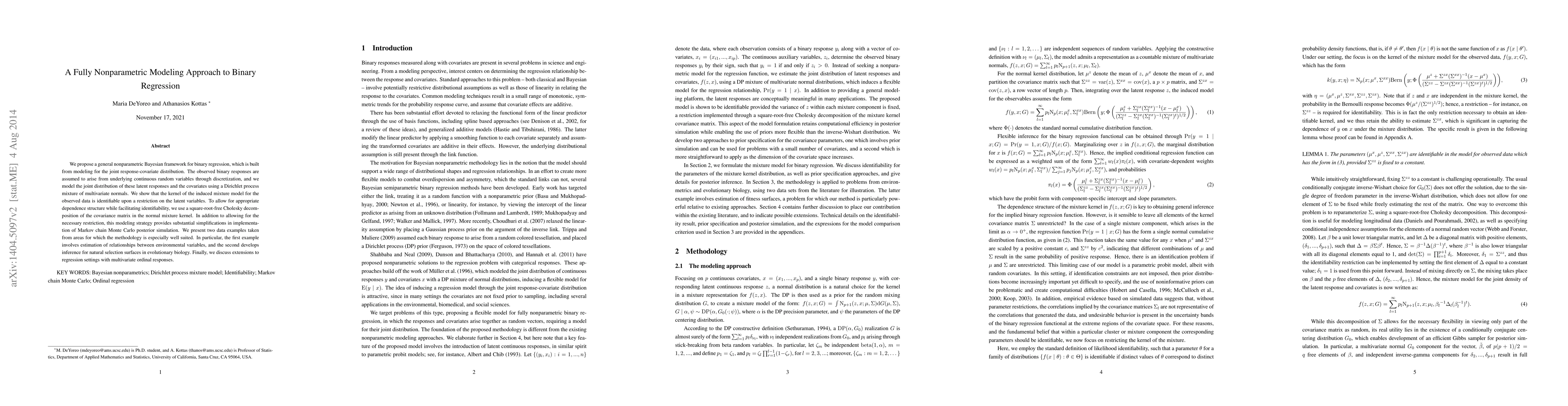 Researchers propose a nonparametric Bayesian framework for binary regression, allowing for flexible dependence structures while maintaining identifiability, with applications in environmental science and evolutionary biology.