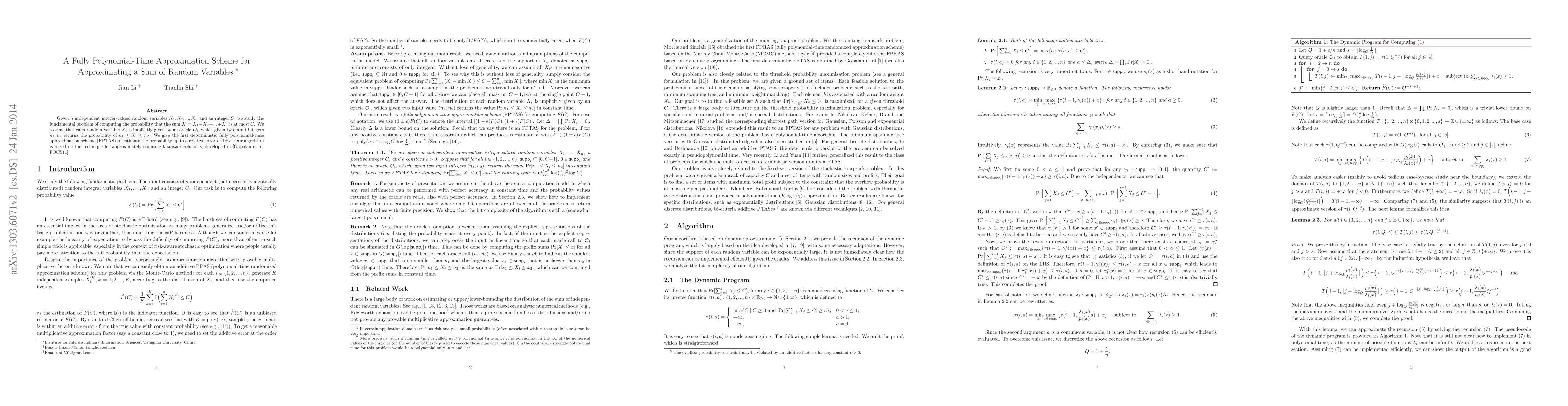 Given $n$ independent random variables $X_1, X_2, ..., X_n$ and an integer $C$, we study the fundamental problem of computing the probability that the sum $X=X_1+X_2+...+X_n$ is at most $C$. We assume that each random variable $X_i$ is implicitly given by an oracle which, given an input value $k$, returns the probability $X_i\leq k$. We give the first deterministic fully polynomial-time approximation scheme (FPTAS) to estimate the probability up to a relative error of $1\pm \epsilon$. Our algorithm is based on the idea developed for approximately counting knapsack solutions in [Gopalan et al. FOCS11].