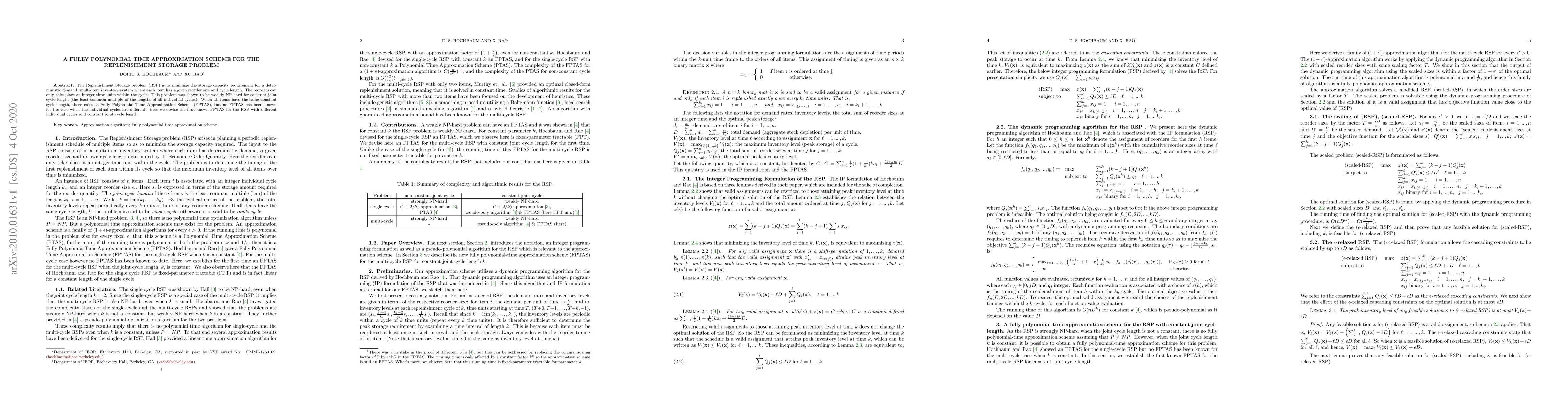 The Replenishment Storage problem (RSP) is to minimize the storage capacity requirement for a deterministic demand, multi-item inventory system where each item has a given reorder size and cycle length. The reorders can only take place at integer time units within the cycle. This problem was shown to be weakly NP-hard for constant joint cycle length (the least common multiple of the lengths of all individual cycles). When all items have the same constant cycle length, there exists a Fully Polynomial Time Approximation Scheme (FPTAS), but no FPTAS has been known for the case when the individual cycles are different. Here we devise the first known FPTAS for the RSP with different individual cycles and constant joint cycle length.