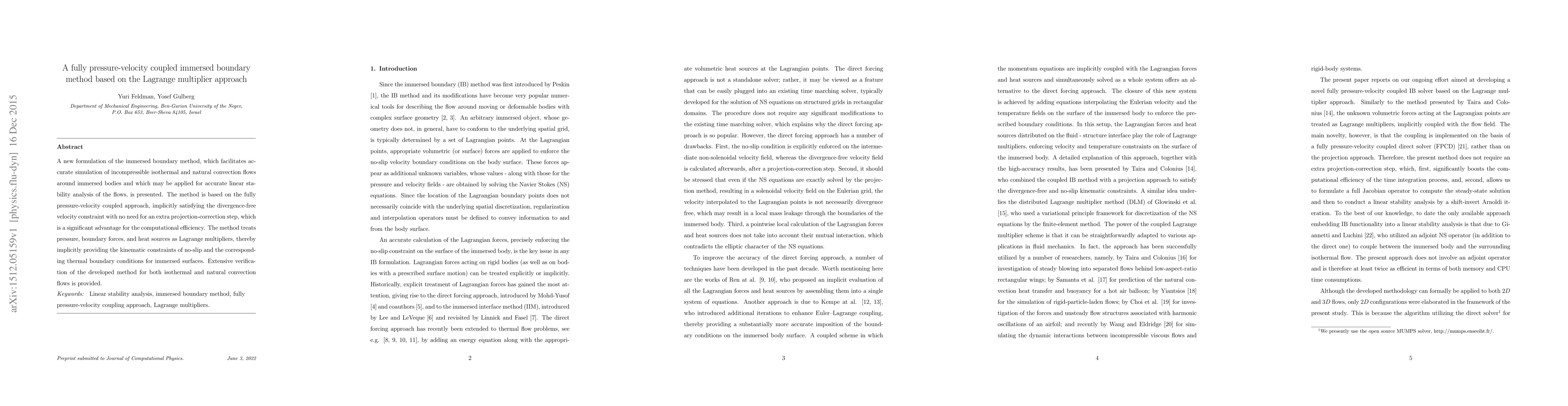 This paper introduces a fully coupled immersed boundary method using the Lagrange multiplier approach for simulating incompressible flows around immersed bodies. It implicitly enforces the divergence-free velocity constraint without a projection step, enhancing computational efficiency and accurately modeling natural convection flows.