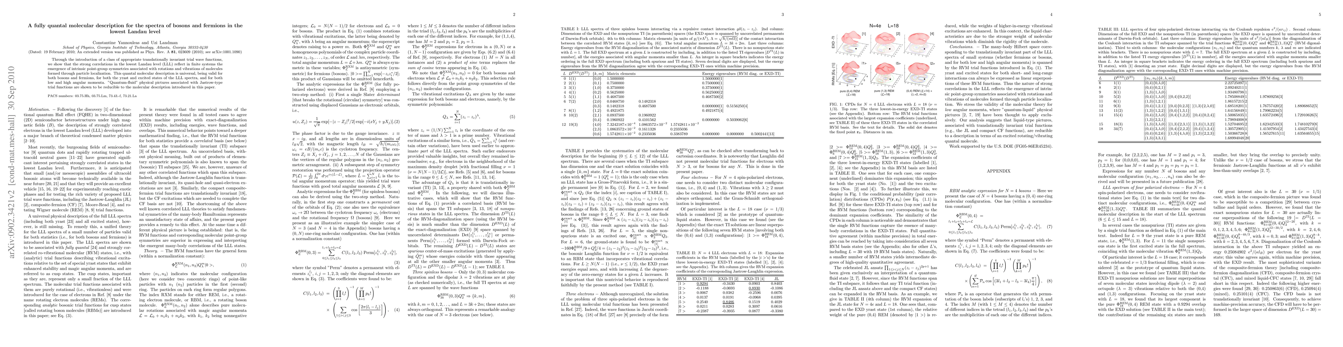 This paper presents a universal quantal molecular description for the spectra of bosons and fermions in the lowest Landau level, showing that strong correlations lead to intrinsic point-group symmetries mimicking molecular rotations and vibrations, applicable to both yrast and excited states across various angular momenta. The "quantum-fluid" models are reducible to this molecular framework.