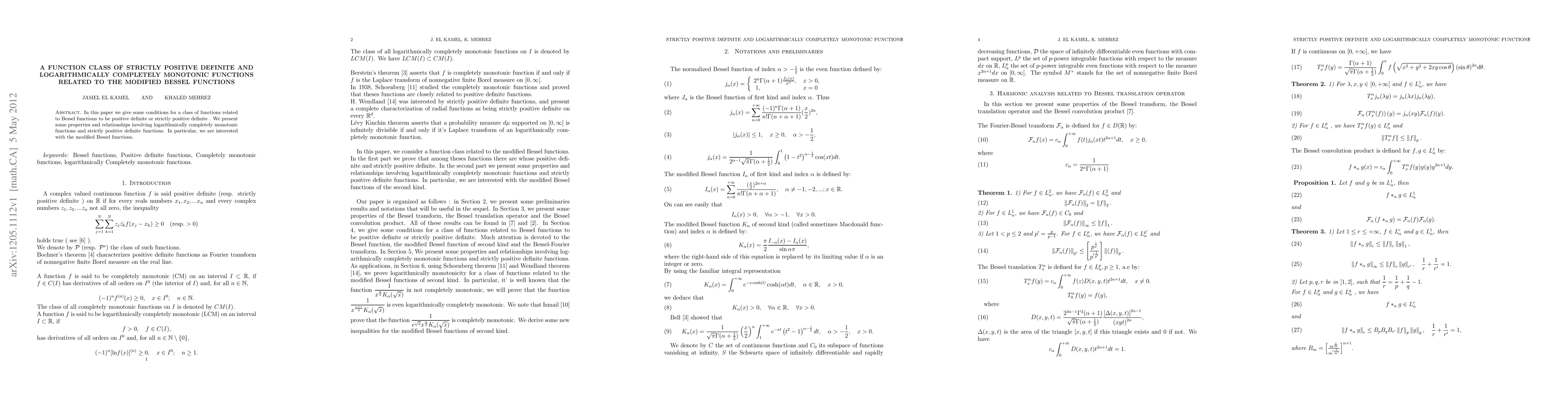 This paper establishes conditions for a function class related to modified Bessel functions to be positive definite or strictly positive definite. It also explores the properties and relationships between logarithmically completely monotonic functions and strictly positive definite functions.
