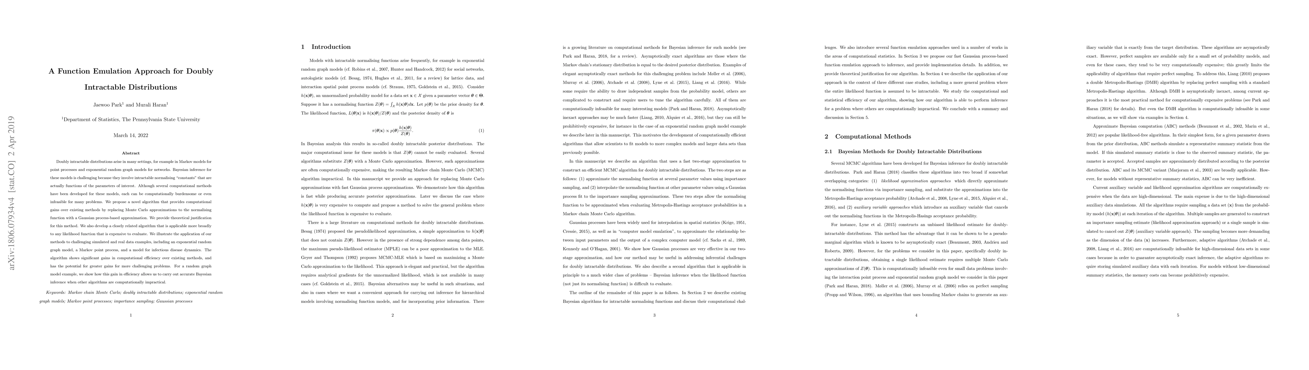Researchers propose a novel algorithm that uses Gaussian process-based approximation to speed up Bayesian inference for doubly intractable distributions, achieving significant computational gains over existing methods.