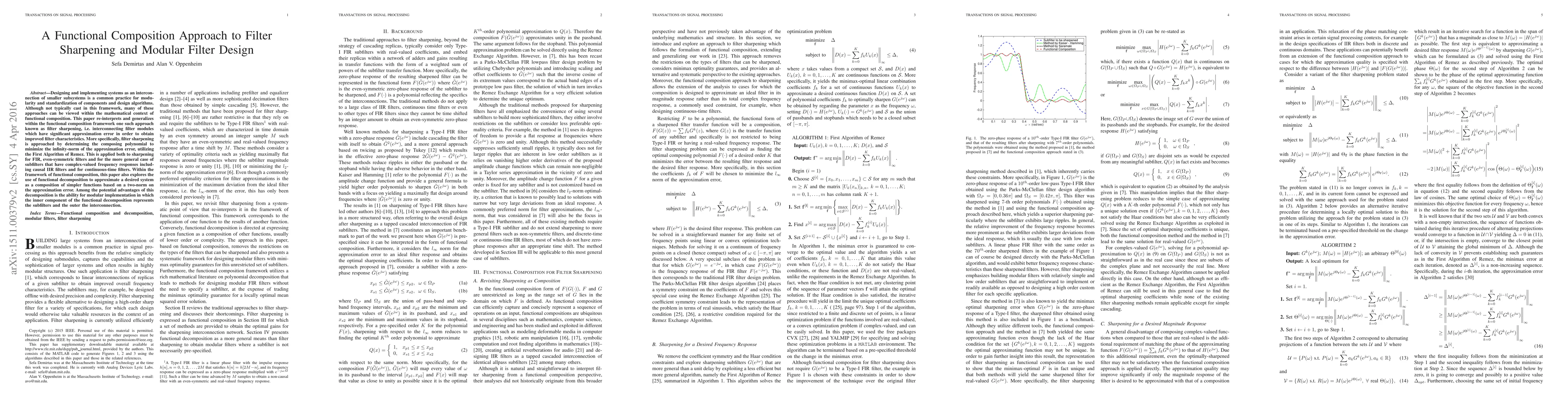 Designing and implementing systems as an interconnection of smaller subsystems is a common practice for modularity and standardization of components and design algorithms. Although not typically cast in this framework, many of these approaches can be viewed within the mathematical context of functional composition. This paper re-interprets and generalizes within the functional composition framework one such approach known as filter sharpening, i.e. interconnecting filter modules which have significant approximation error in order to obtain improved filter characteristics. More specifically, filter sharpening is approached by determining the composing polynomial to minimize the infinity-norm of the approximation error, utilizing the First Algorithm of Remez. This is applied both to sharpening for FIR, even-symmetric filters and for the more general case of subfilters that have complex-valued frequency responses including causal IIR filters and for continuous-time filters. Within the framework of functional composition, this paper also explores the use of functional decomposition to approximate a desired system as a composition of simpler functions based on a two-norm on the approximation error. Among the potential advantages of this decomposition is the ability for modular implementation in which the inner component of the functional decomposition represents the subfilters and the outer the interconnection.