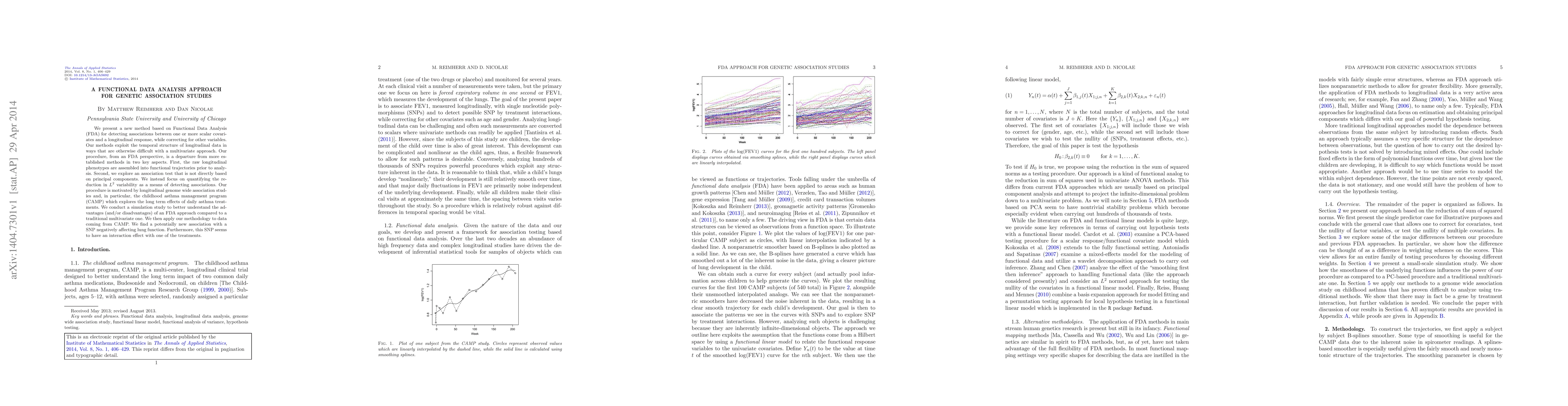 This paper introduces a novel Functional Data Analysis (FDA) method for genetic association studies, focusing on longitudinal responses and temporal structures. The method detects associations by quantifying the reduction in $L^2$ variability, differing from traditional multivariate approaches by assembling raw longitudinal data into functional trajectories. The approach is applied to childhood asthma management data, revealing a potential new association with a SNP affecting lung function.