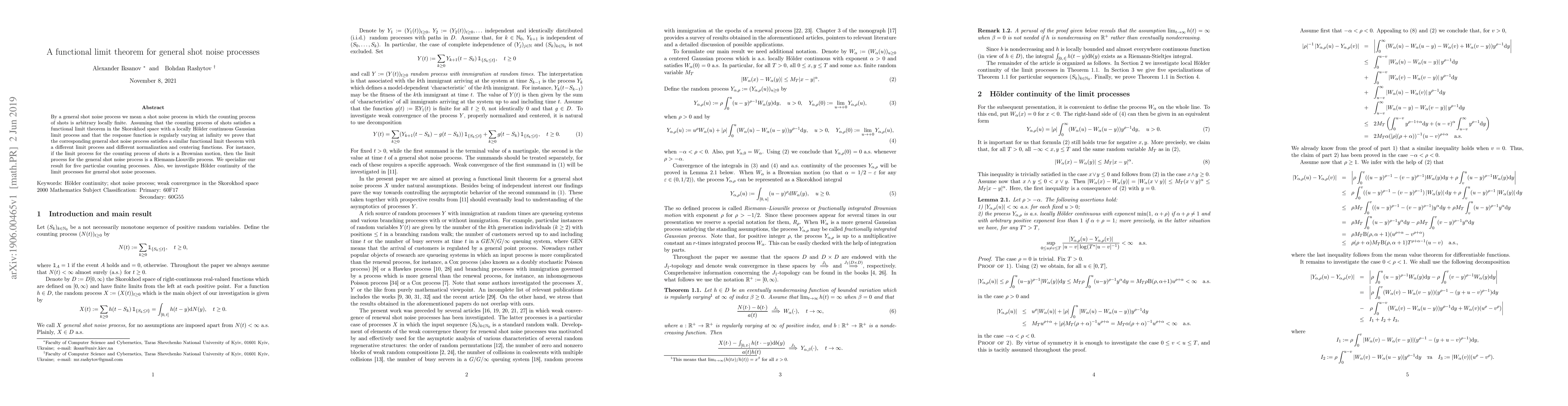 This paper proves a functional limit theorem for general shot noise processes, showing that if the counting process has a Gaussian limit in the Skorokhod space, the shot noise process will similarly converge to a different limit process, such as a Riemann-Liouville process when the counting process's limit is Brownian motion. The study also examines the Hölder continuity of these limit processes.