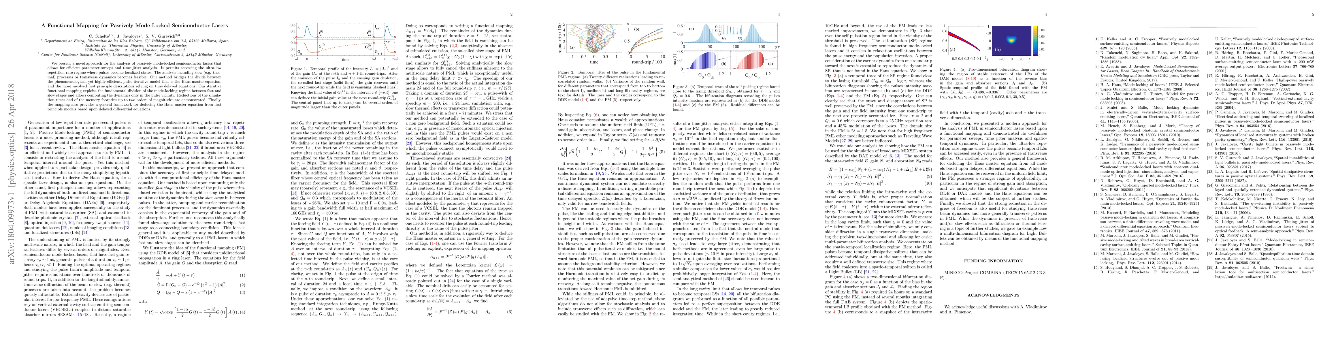 This paper introduces a novel functional mapping technique for analyzing passively mode-locked semiconductor lasers, enabling efficient simulations and time jitter analysis, especially in the ultra-low repetition rate regime. The method bridges the gap between the efficient but phenomenological Haus master equation and more complex first-principles models, significantly reducing simulation times and memory usage.