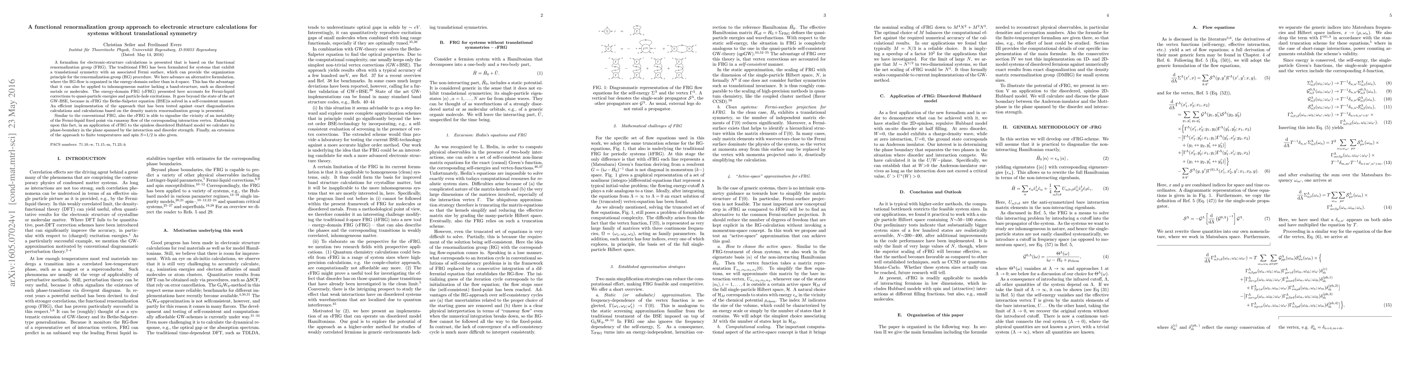 A new method for electronic structure calculations is presented, using functional renormalization group, which can handle systems without translational symmetry, allowing applications to disordered metals and molecules.