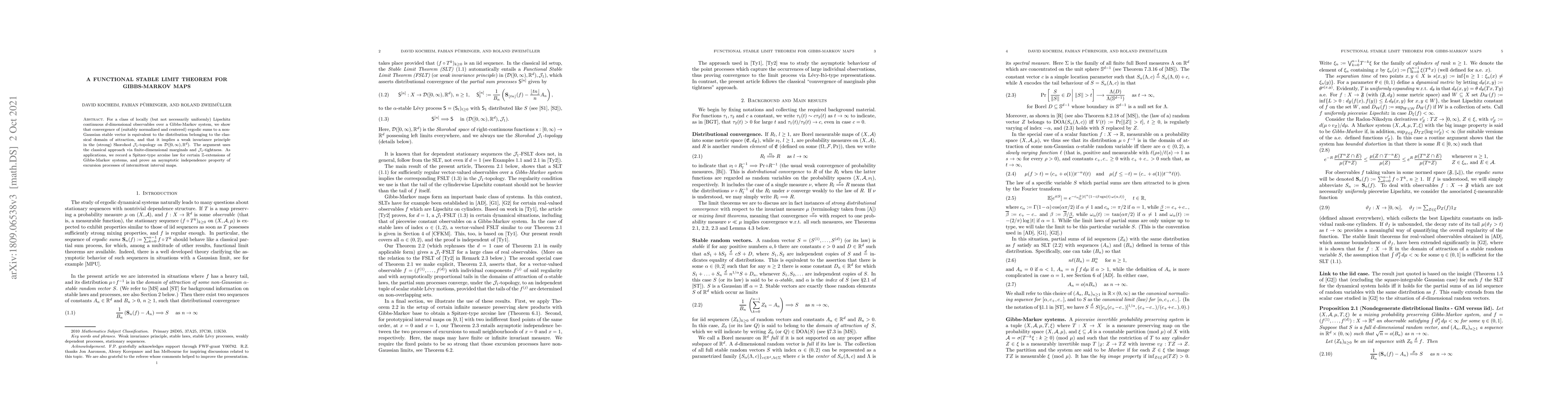 This paper establishes a functional stable limit theorem for Gibbs-Markov maps, proving that convergence of ergodic sums to a non-Gaussian stable vector implies the distribution belongs to the classical domain of attraction and follows a weak invariance principle in the Skorohod $\mathcal{J}_{1}$-topology. Applications include a Spitzer-type arcsine law and an asymptotic independence property for excursion processes.